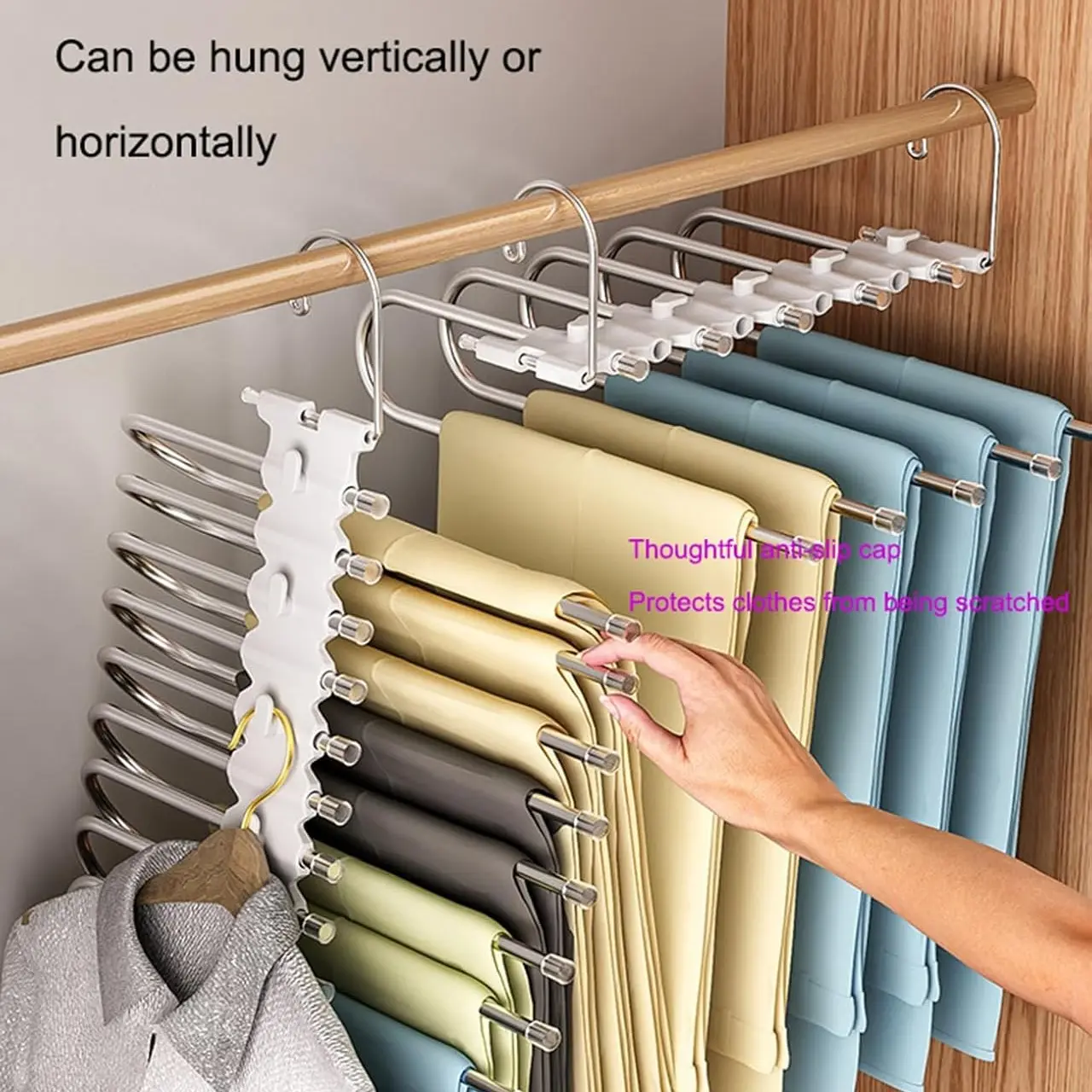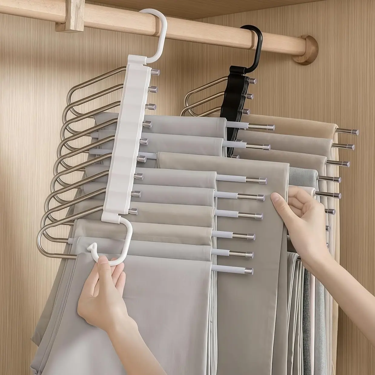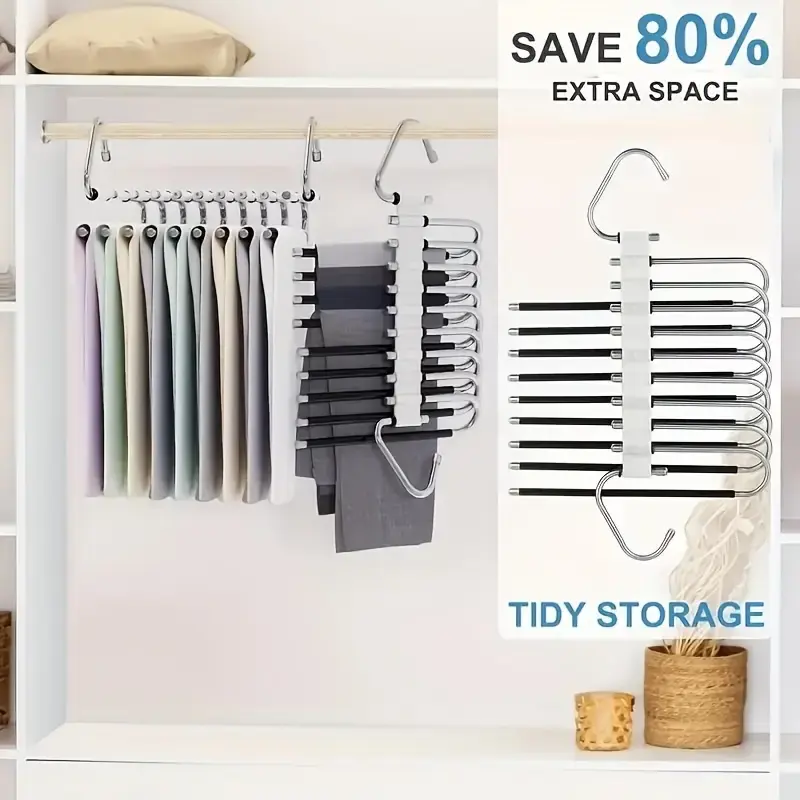 ·Two Ways to Use: The pants organizer for closet supports both horizontal and vertical hanging methods. The horizontal mode is perfect for drying or picking out clothes. Switch to the vertical mode to dramatically maximize your storage capacity, making it perfect for spaces like wardrobes, closets, or dorm rooms