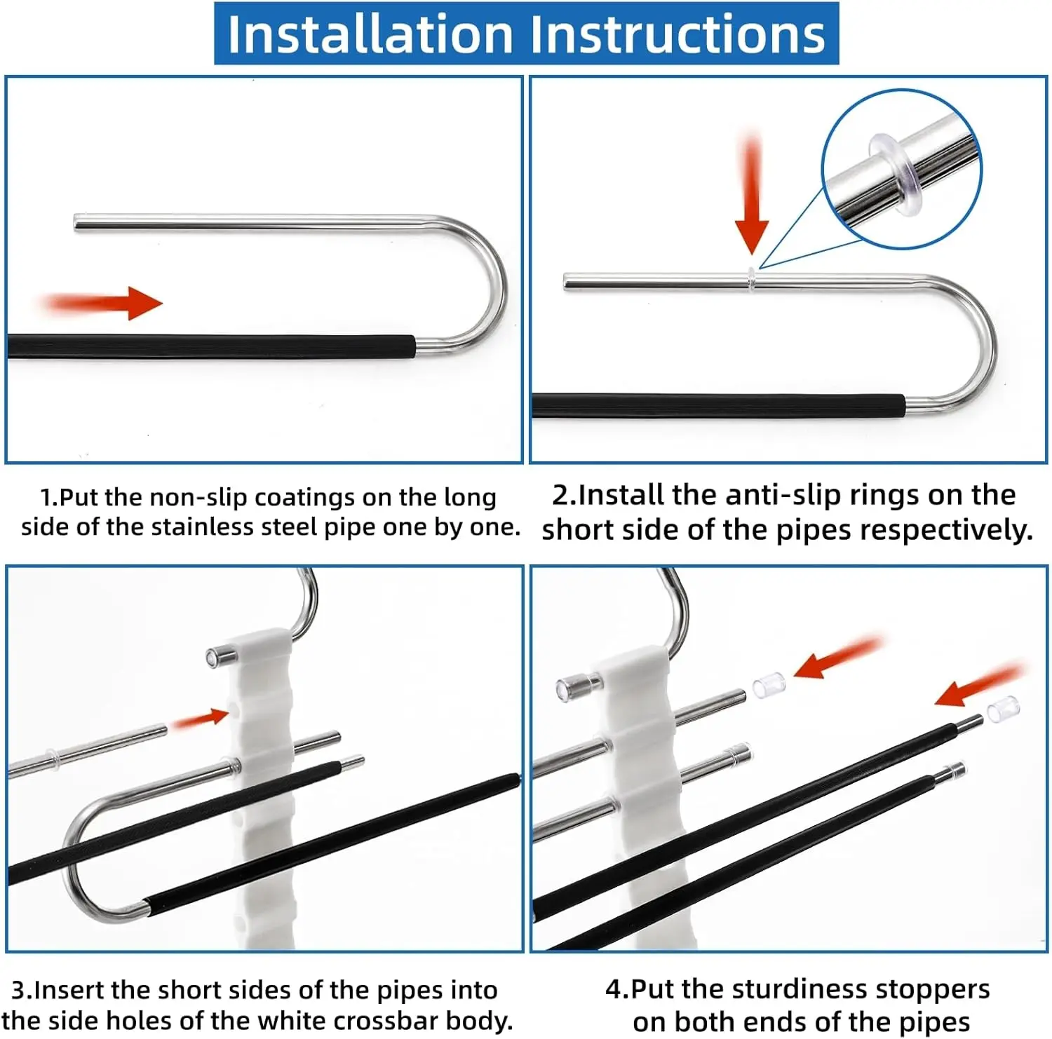 ·Non-Slip Design: Each of our jeans hangers comes with sufficient stoppers, anti-drop rings and anti-slip coatings, which can prevent the rod from falling off, avoid sliding, keep the hanger balanced and prevent the pants from slipping