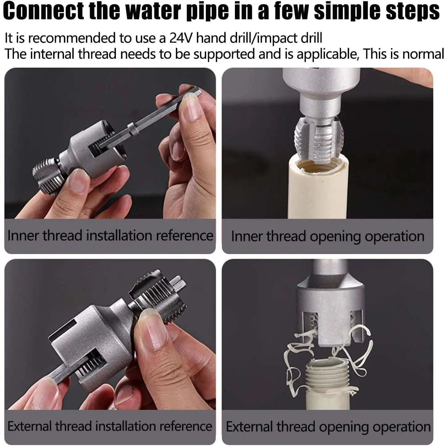 Can be combined with an electric drill to improve work efficiency.Used to clean blocked or damaged pipe threads.Accurate and fast, it is an ideal choice for cutting pipe threads