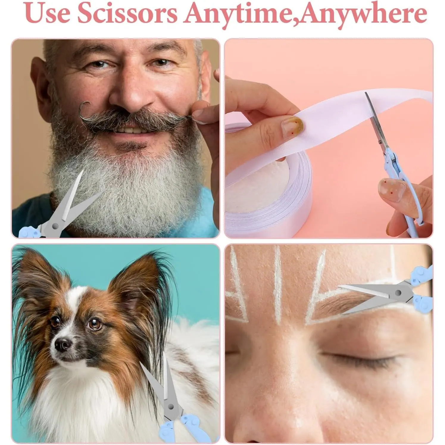 【Mini Folding Scissors】The package contains 2 pcs of small colored foldable scissors: 1 blue, 1 pink, very suitable for DIY crafts, paper cutting, etc.【Folding Scissors】Collapsible design and secure silicone caps protect you from the blades when not in use, you can easily fold the folding scissors and put them into your backpack or pocket to take with you【Reliable Quality】Made of stainless steel blades and quality plastic handles, the travel scissors are sharp, sturdy and durable. The scissors are folded when received, which is more secure.【Size Details】Foldable scissors measure 10x6 cm (expanded size), mini size, not only suitable for home use, but also a great choice for outdoor activities.【Multifunctional】The cute travel scissors can be used to cut paper, fabric, hair, thread, cardboard and more, a useful tool for making crafts in the kitchen, home and school