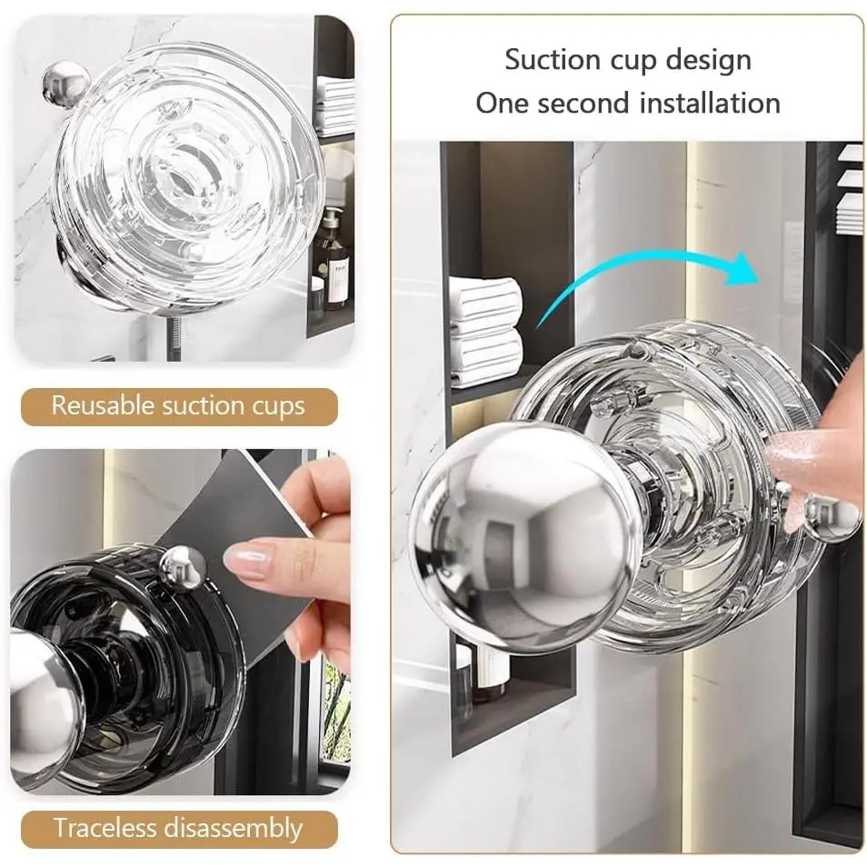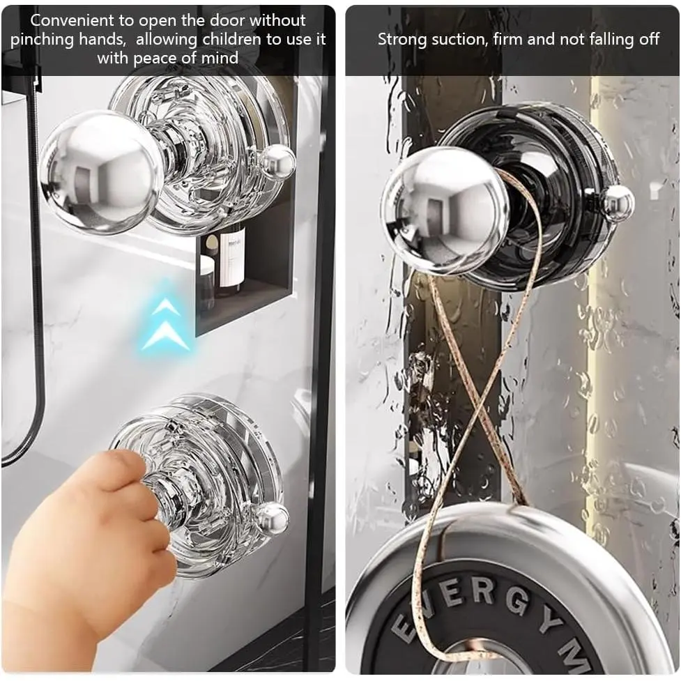BEARING FORCE: These suction cups boast adsorption and load-bearing capabilities.Equipped with a vacuum lock ring, it effectively prevents loosening caused by the release of air pressure, ensuring secure installation even in wet conditions and providing a stable grip.It is widely applicable on glazed,, tile,, and surfacesEASY INSTALLATION: wipe the wall, press the suction cup to fully expel air inside, then rotate the vacuum lock to the to complete installation.The suction cups can be reused multiple times and detached leaving any trace.Perfect for mounting on refrigerators, cabinets, drawers or doorsallowing doors to open-FUNCTION: Thanks to its load-bearing force, this not only serves as a door knob but also functions as wall-mounted hangers for storing handbags, clothes, hats, keys, headsets, etc., spaces more tidy and orderly& SIZE: The knob is constructed from PET and ABS, and its surface undergoes electroplating coating treatment for a fashionable and beautiful appearance.With a size of 2.36 inches/6 cm in diameter and 3.11 inches/7.9 cm in thicknessPACKAGE INCLUDED: 2 x suction cup knobs (decorative items shown in pictures are NOT included)