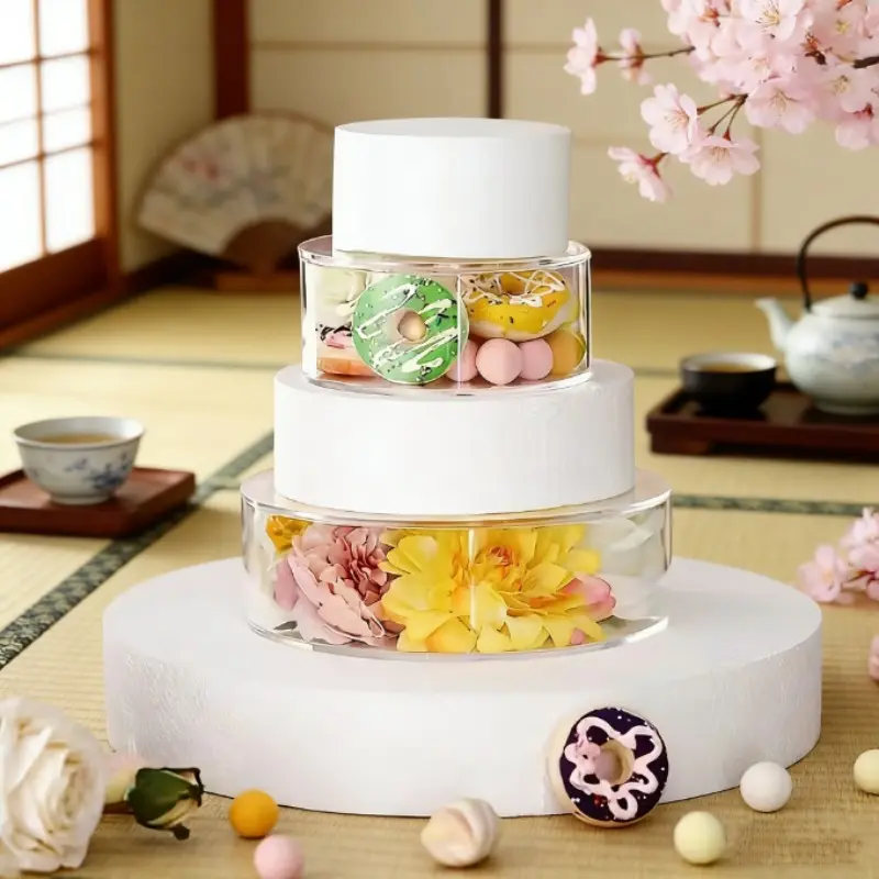 【Transparent Material】: Crafted from clear acrylic, these stands offer a sleek look while showcasing your desserts beautifully.