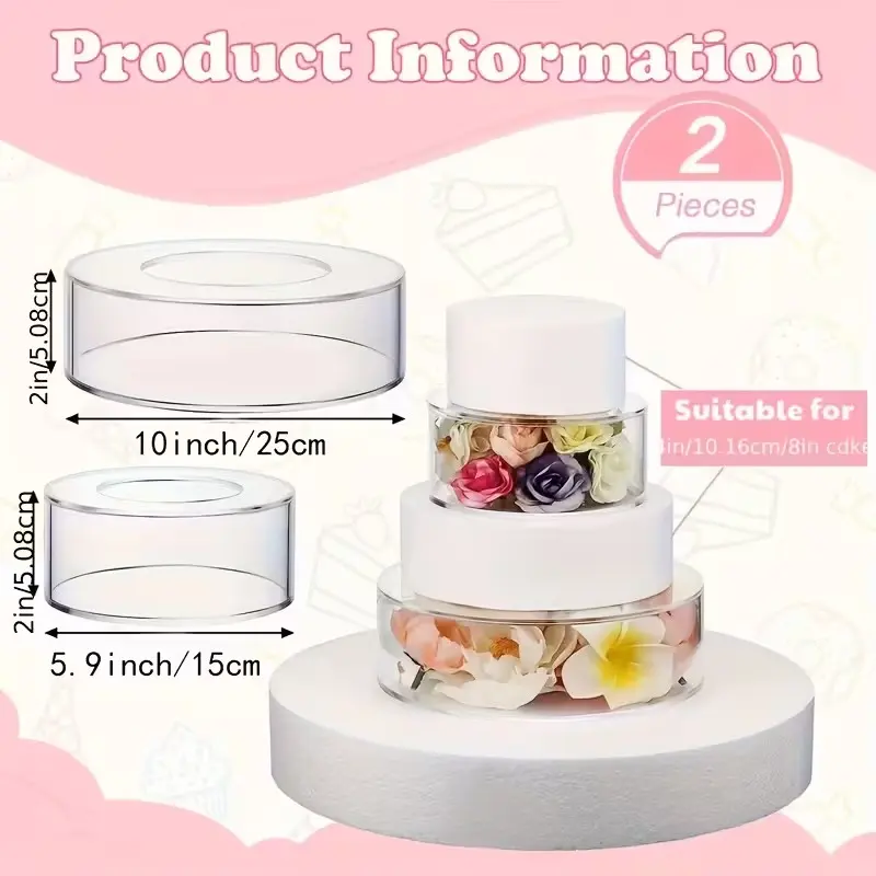2pcs Transparent Acrylic Cake Stands - Stackable Nesting Cylinder Display Stands with Fillable Tiers, Suitable for Wedding Birthday Party Dessert Display, Reusable Tiered Cake and Cupcake Stands, Event Tableware Safe Design | Clear Style | Smooth