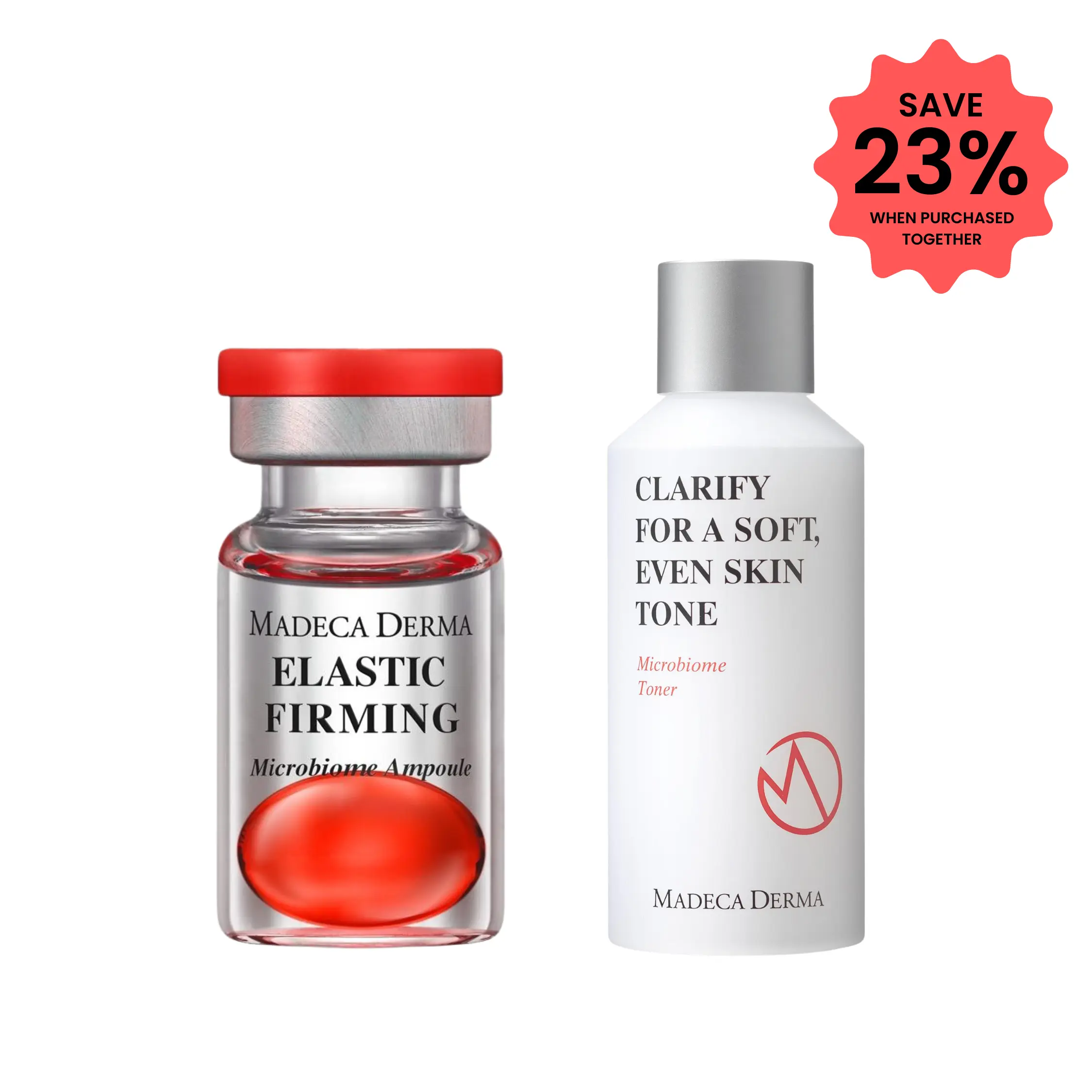 The Madeca Derma 2X Firming Boost Set pairs our viral Elastic Firming Microbiome Ampoules with the Microbiome Balancing Toner for double the firming effect and next-level skin barrier repair.