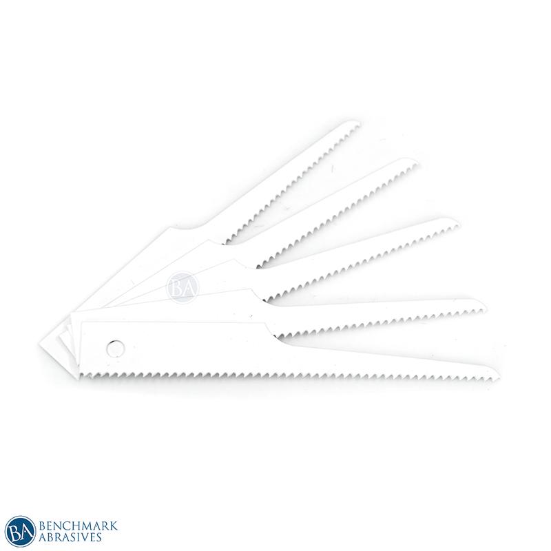Benchmark Abrasives 3-1/2" X 14T Air Saw are constructed from durable bi-metal for high-performance cutting power. This fourteen tooth (14T) heavy-duty air saw blade delivers fast, clean cuts ideal for auto body and exhaust work. They are suitable for cutting wood, fiberglass, and plastic. It is designed for auto body and exhaust work.