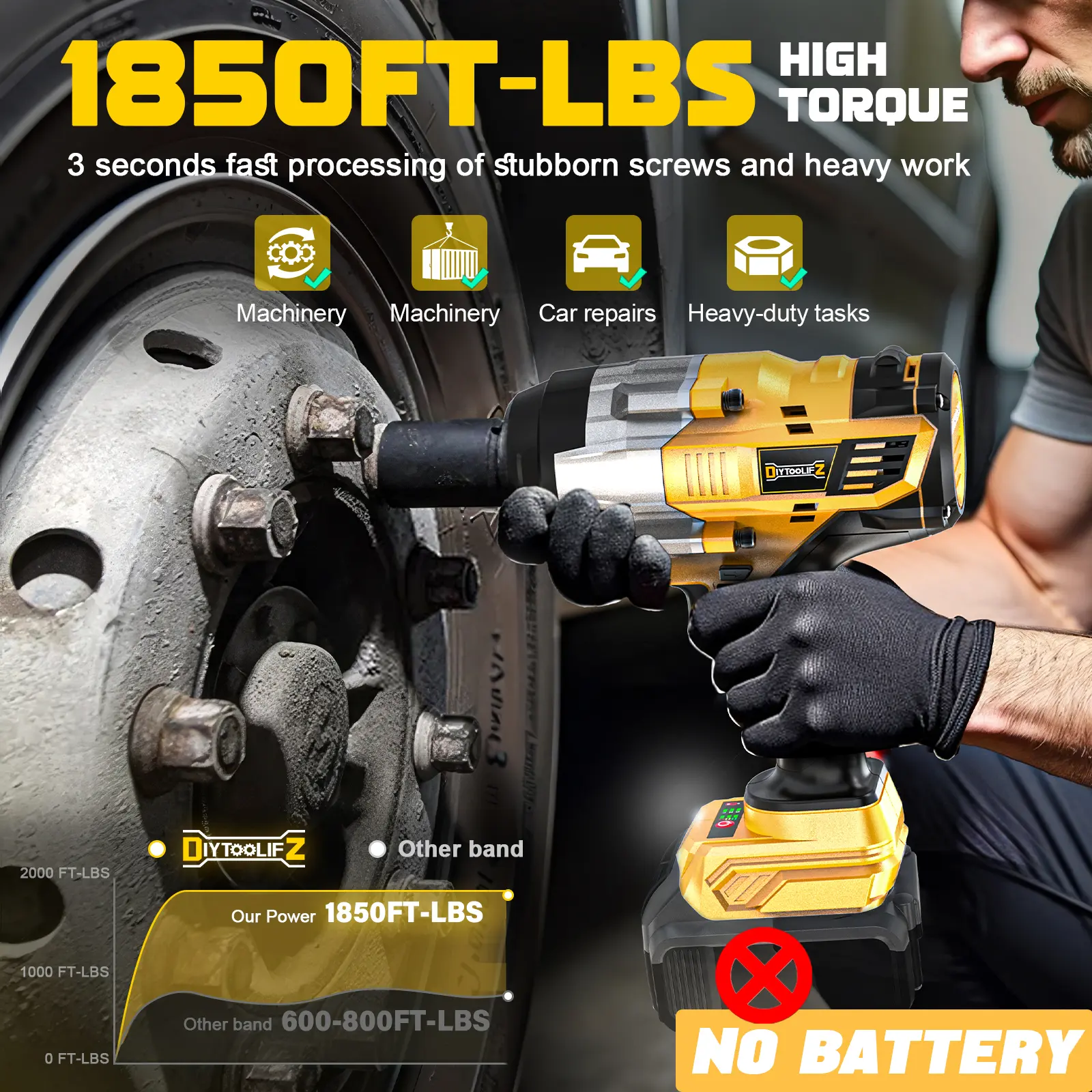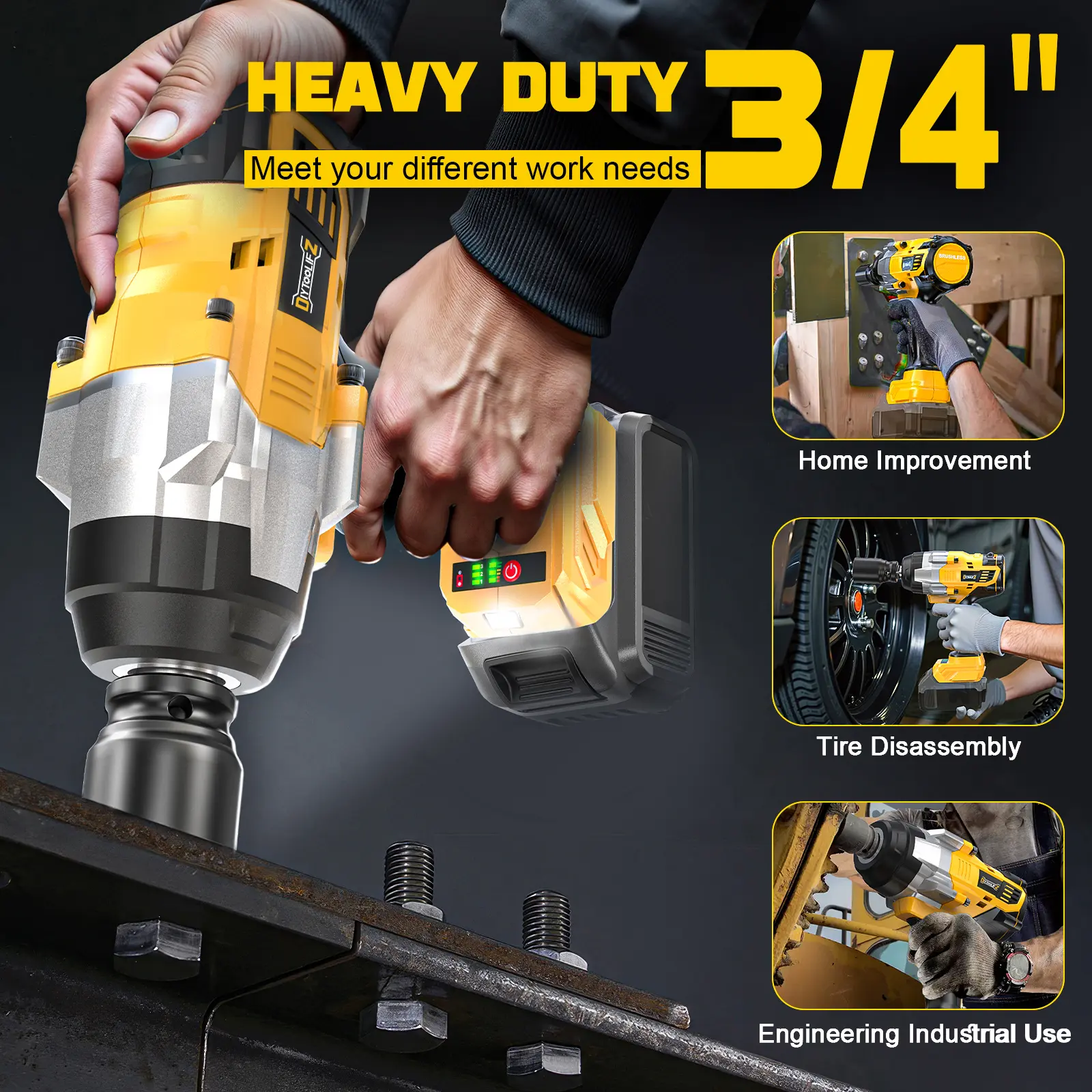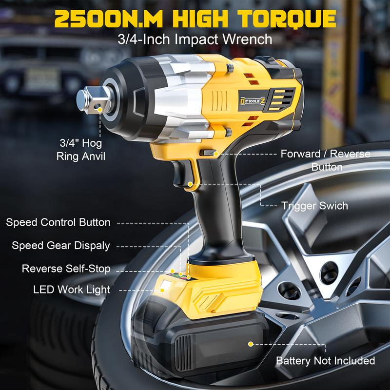 ·Powerful 2500N.m Torque: With 1850 FT-LBS of high torque, this 3/4" impact wrench tackles heavy-duty tasks with ease. Built for DeWalt users, it delivers precision and power for automotive, construction, and industrial jobs.
