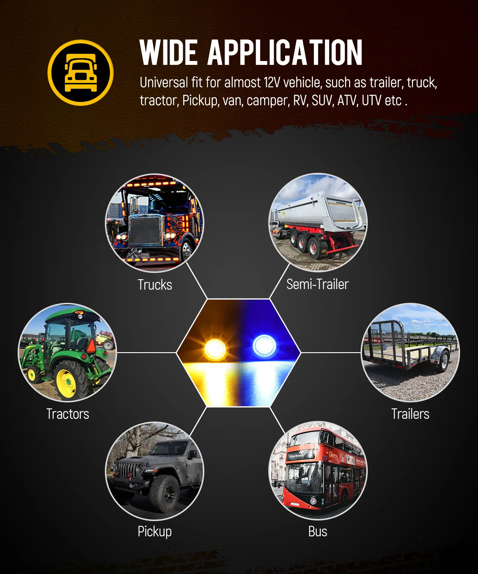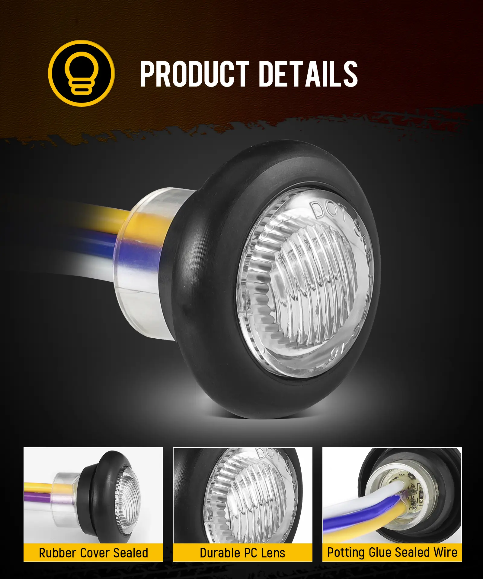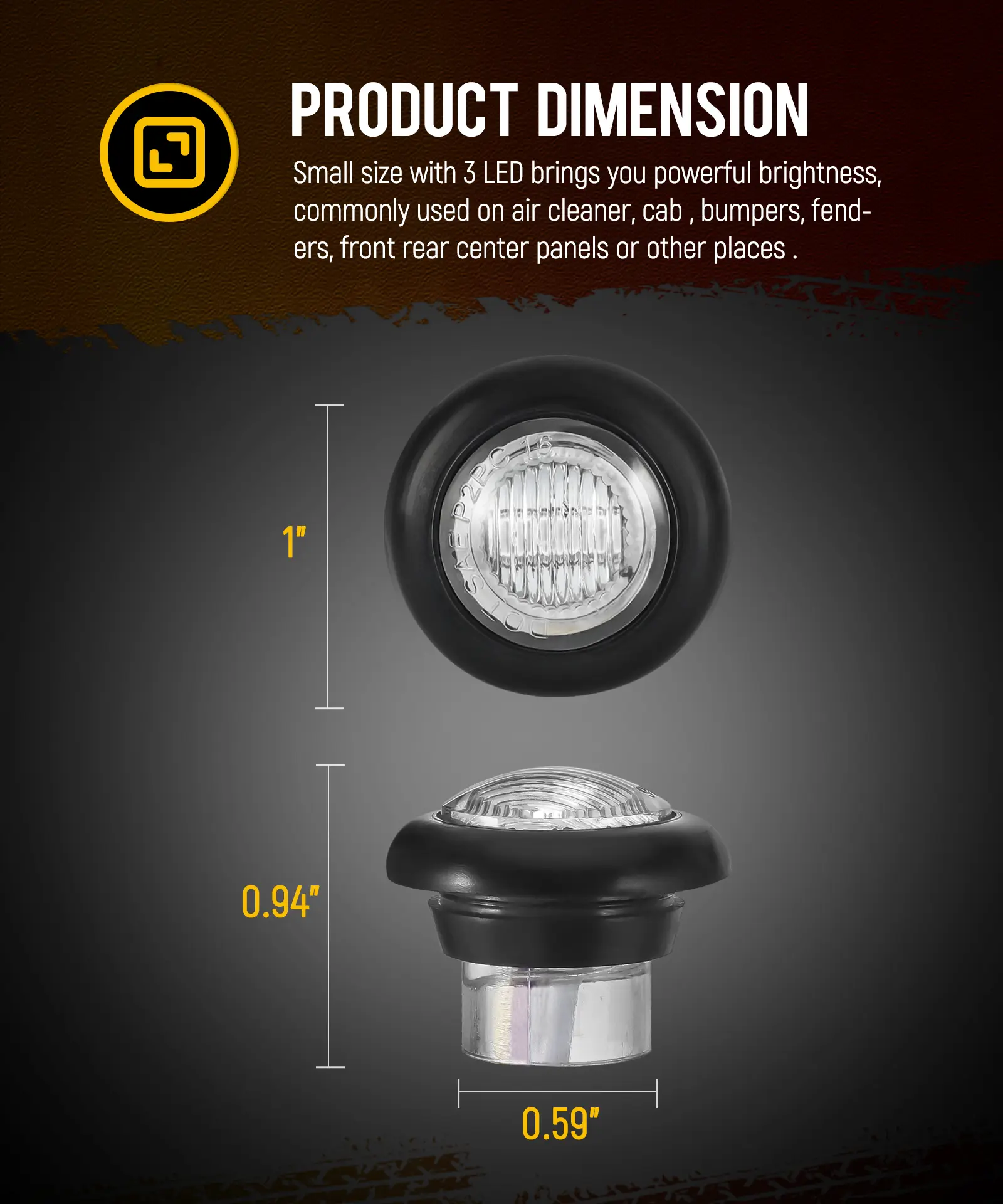 Each 3/4" LED marker light has 3 SMD LEDs that provide intense, stable illumination. With 10 lights included, you'll enhance visibility and safety on the road, meeting all your driving needs.
