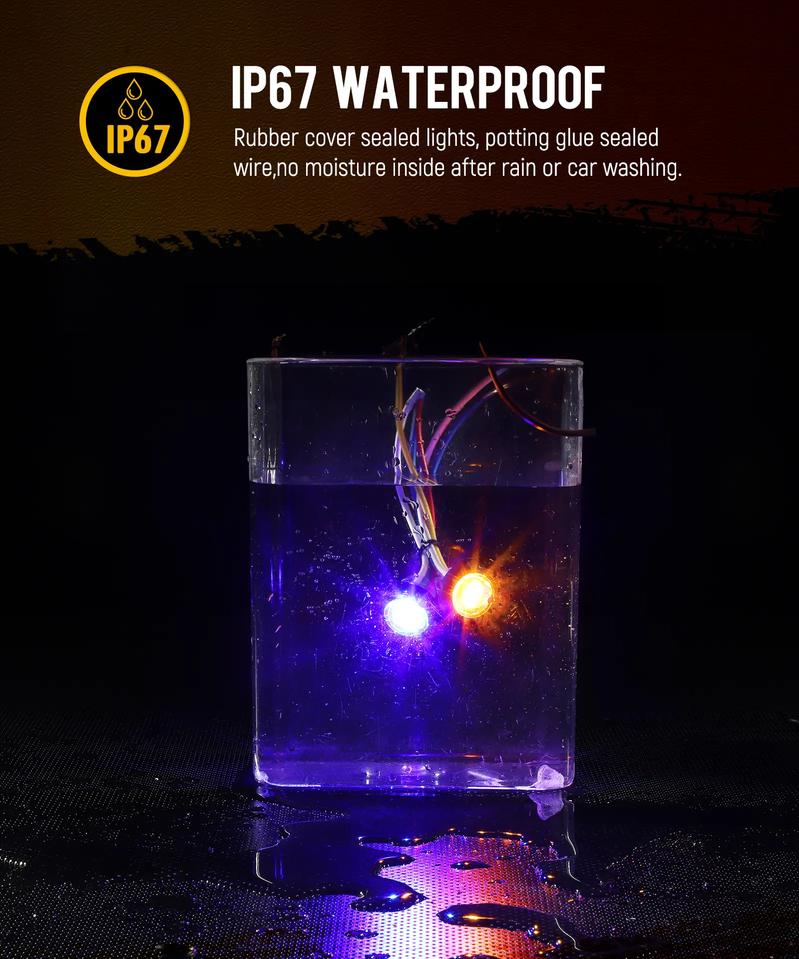 Made with a polycarbonate lens and rubber grommets, these lights are built to last. They feature IP65 waterproof protection, safeguarding against water, dust, and debris for reliable performance.