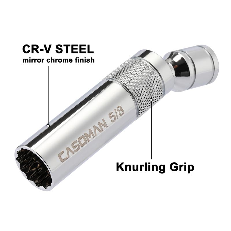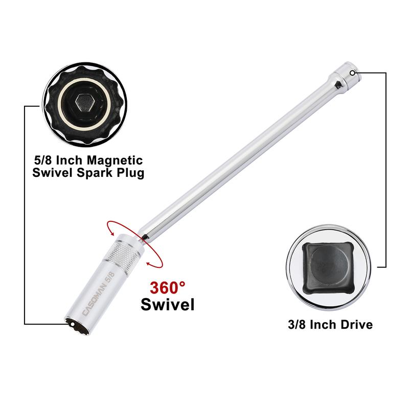·The spark plug socket has 360 degree swivel action for maximum flexibility, 12-point design for enhanced gripping power.