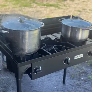This powerful three burner, equipped with a cast iron head, outputs a whopping BTU of 225000. And it can adjust the firepower to make your cook more delicious. It is suitable for various types of pot because of burner bracket. So you can enjoy cooking outdoor with your family to have a happy time. Do not hesitate, just buy it.