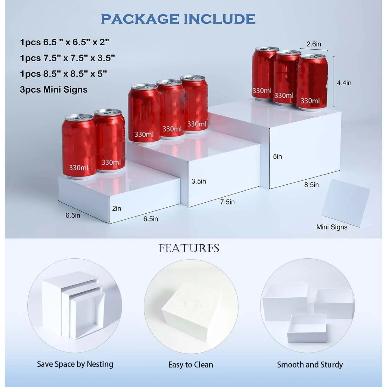EASY TO STORE & CLEAN: display risers are nesting and stackable, with hollow bottoms, and can combine various display methods. The risers are , and can hold a significant amount of weight.their compact design allows for convenient storage when not in use.The smooth surface of display risers make them easy to clean.