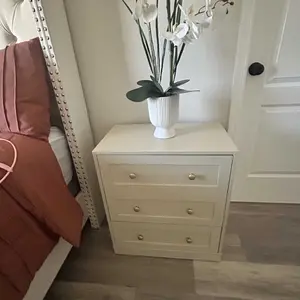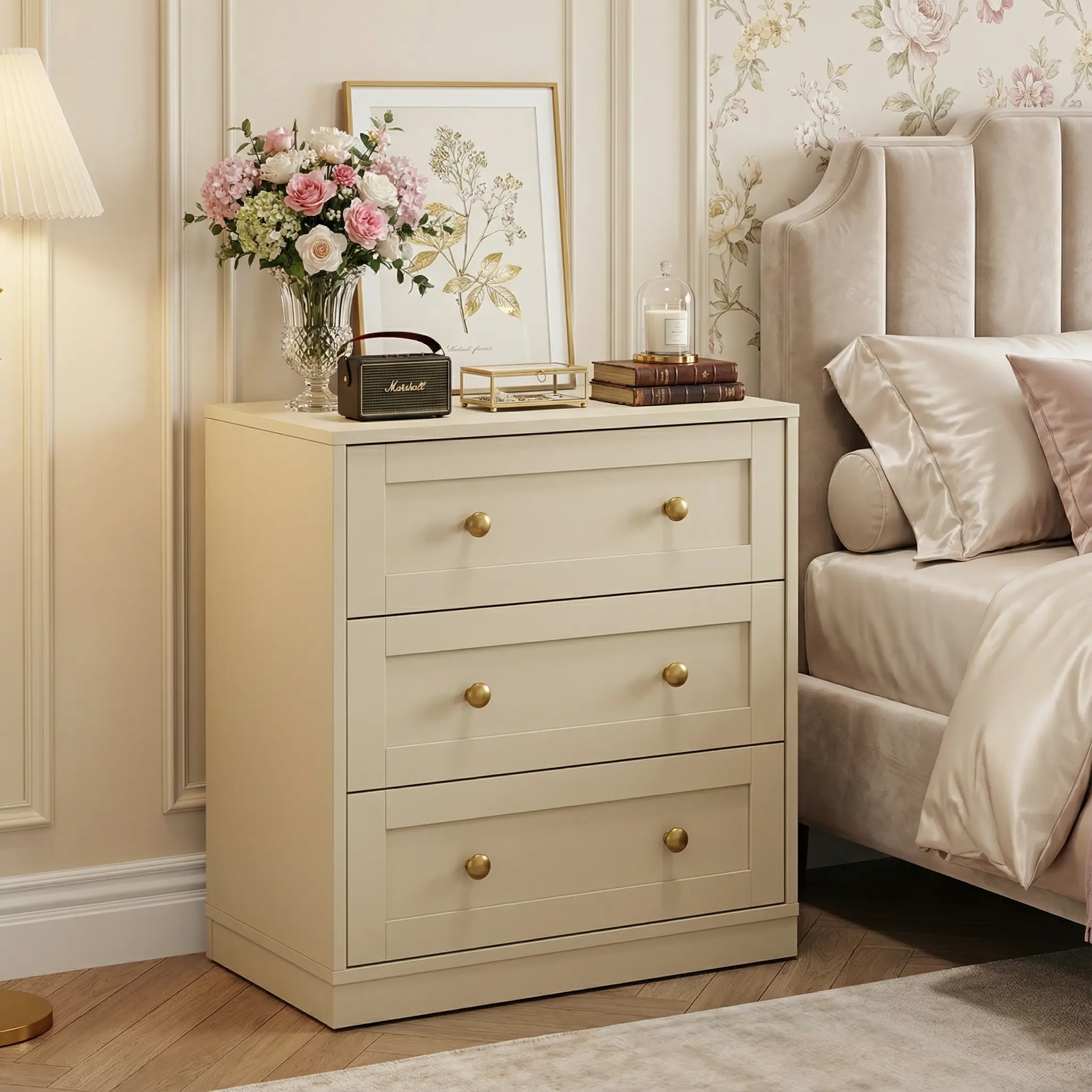 ·Storage Master: Measuring 23.62" x 13.78" x 26.97", this compact nights tand is the perfect fit for small spaces or narrow areas. With 3 spacious drawers, it provides ample storage to help you organize and declutter efficiently. The roomy tabletop is ideal for everyday items, as well as for showcasing decor or small plants, adding both style and practicality to your space.