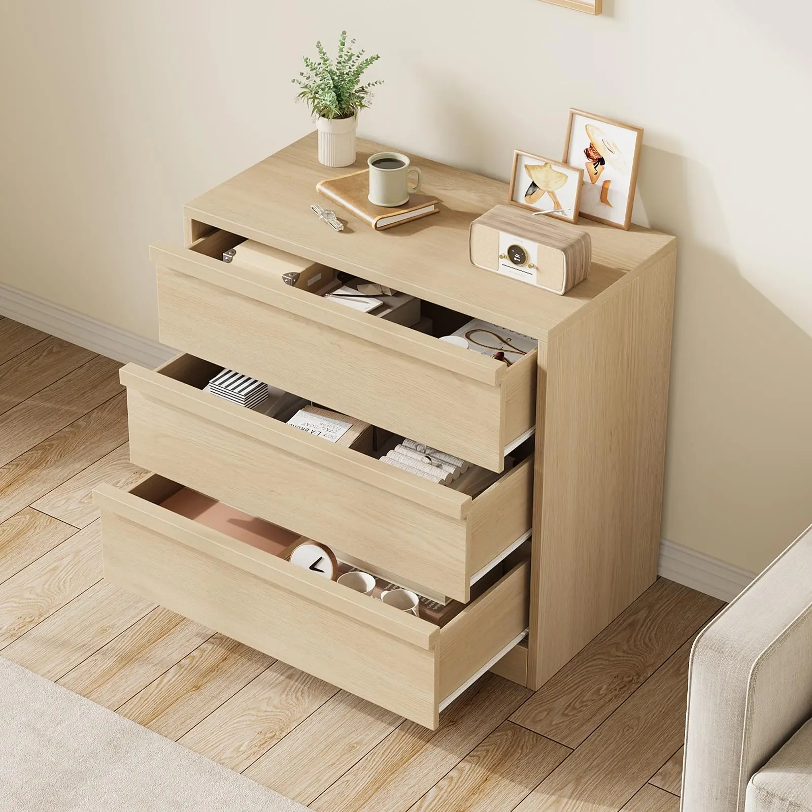 ·AMPLE STORAGE SPACE - Featuring three large drawers and a spacious tabletop, this dresser provides plenty of space to organize your clothing, decor accessories, books and more, keeping your home tidy and clutter-free. Moreover, each drawer is equipped with smooth gliding mechanisms, making it easy to open and close even fully loaded