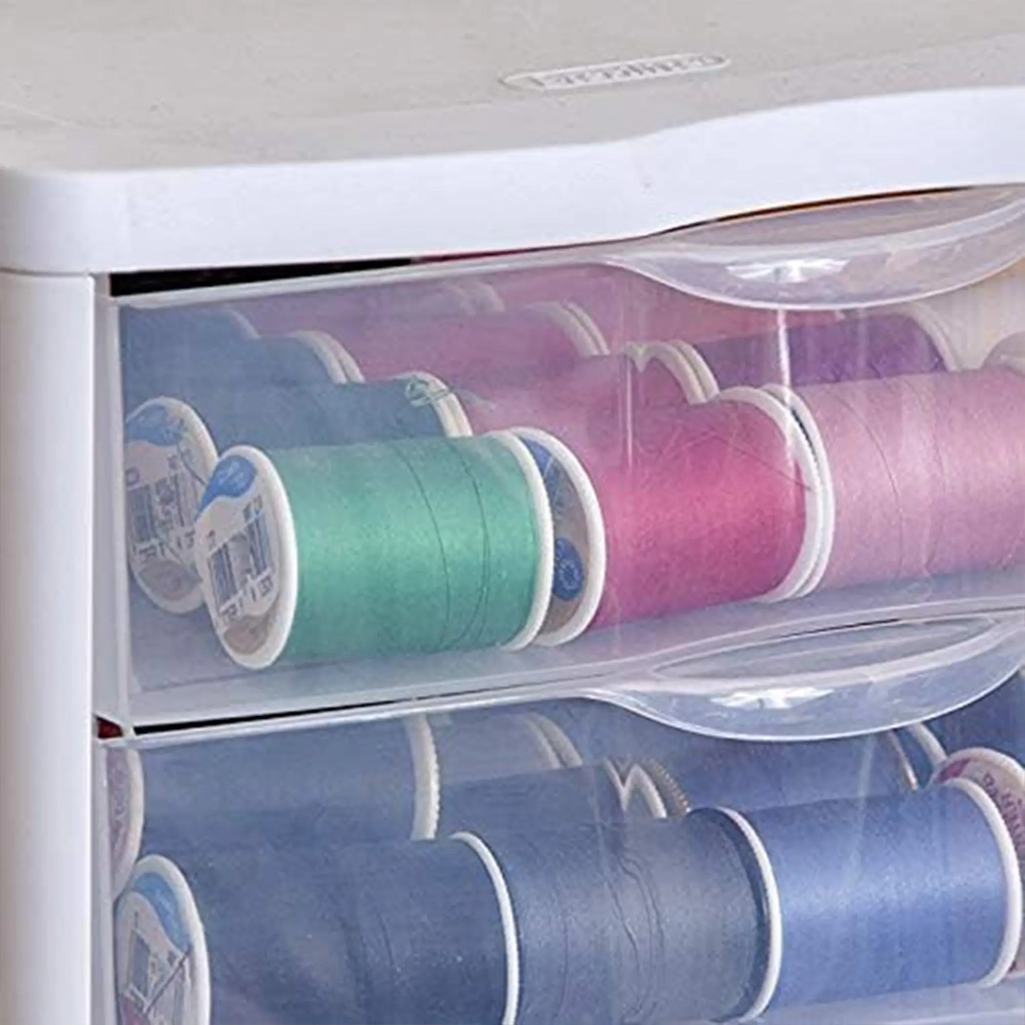 Featuring a sleek white frame and see-through drawers you can easily find what you are looking for without opening every drawer. Conveniently store your standard ream 8.5 x 11-inch paper along with other crafting supplies like pens, markers, beads, paint, and more.
