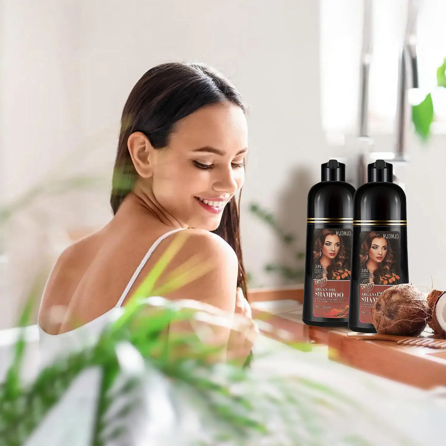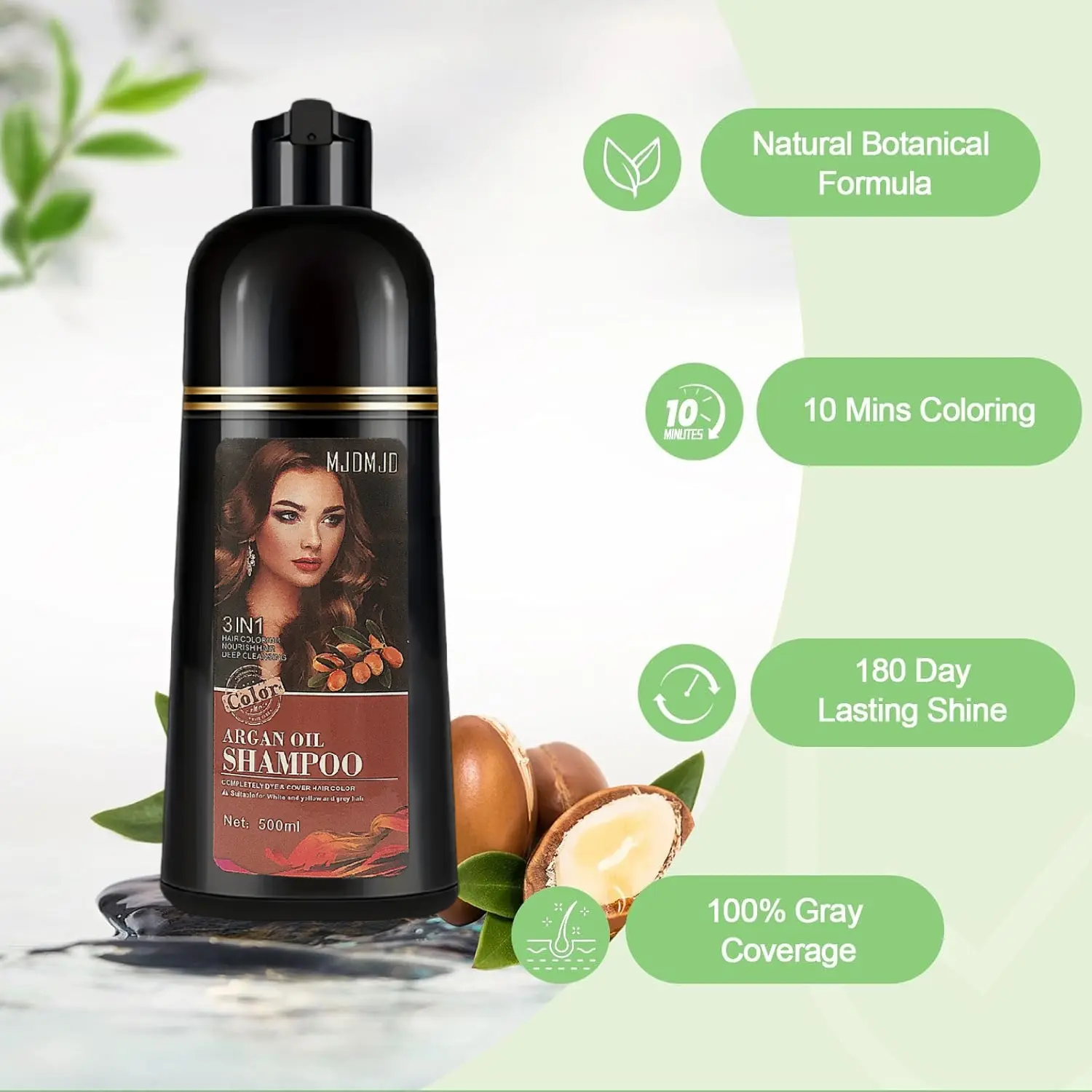 Achieve natural-looking, vibrant hair color with our 500 ml Healthy Botanical 3-in-1 Argan Oil Hair Color Cream—a revolutionary formula that combines coloring, conditioning, and gray coverage in one easy step. Enriched with argan oil and botanical extracts, this shampoo delivers long-lasting light brown or black shades while keeping your hair healthy, shiny, and strong.