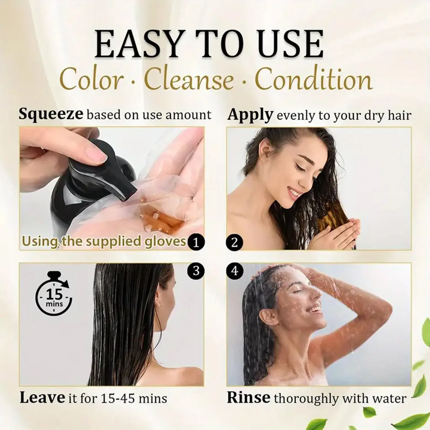 ·3 IN 1 DYE SHAMPOO: The 3 in 1 Hair Dye Shampoo truly simplifies your grooming routine by combining the hair washing, coloring, and conditioning in one package. It's the perfect time-saver and hassle-free. It makes a fantastic gift for elders