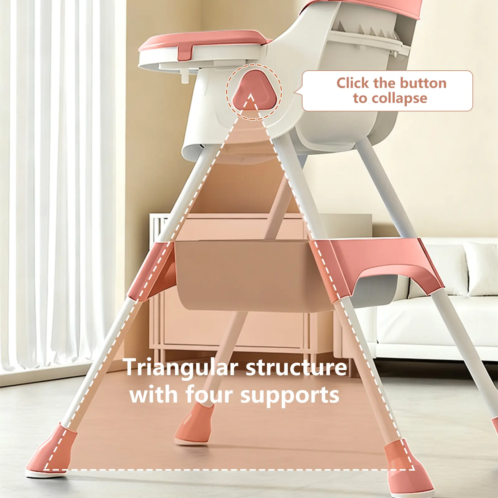 [COMFORT AND SAFETY HAND-IN-HAND] This baby feeding chair comes with a five-point safety harness(firmly pre-installed) and a 3-level adjustable backrest, ensuring maximum comfort and safety for your little one. Further boosting its safety measures, toddler high chair has anti-slip foot pads and triangle design to protect your floors and enhance stability, never worry about shaking and tipping.