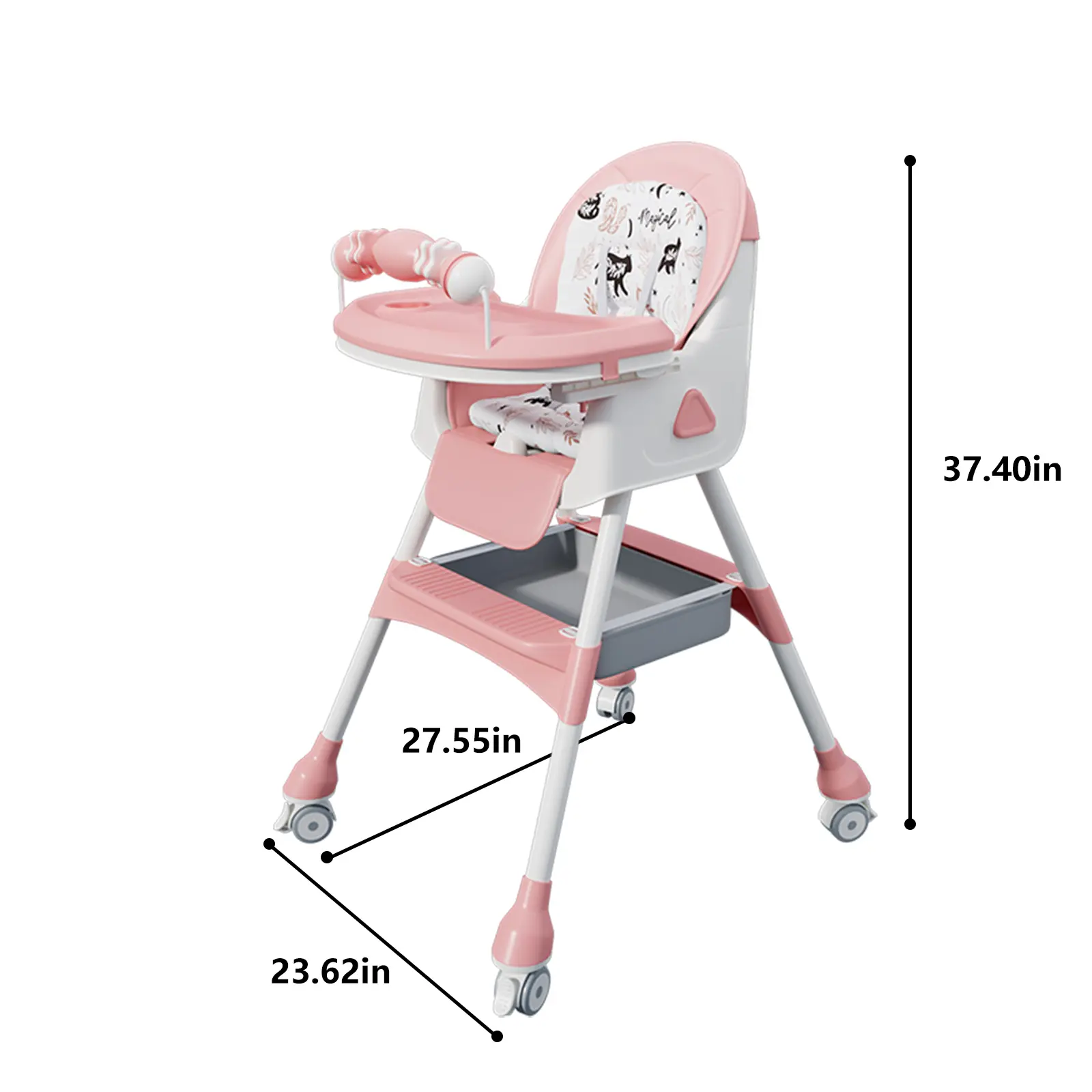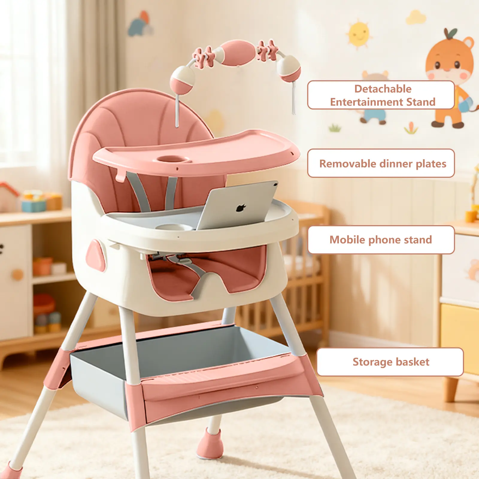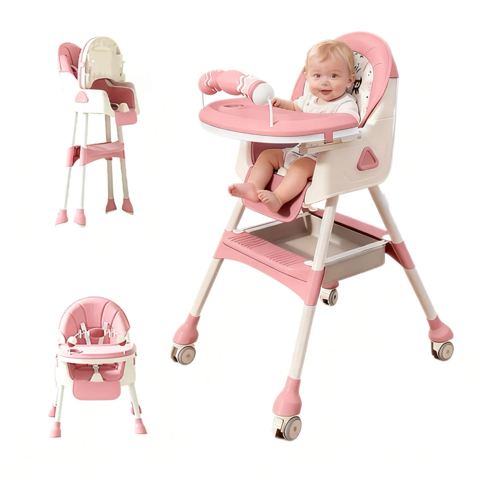 [MULTI-FUNCTIONAL CONVERTIBLE DESIGN] This highchair offers 4 convertible modes, transforming seamlessly into a high chair, low chair. The versatile design makes it ideal for baby's feeding, gaming, and everyday use.
