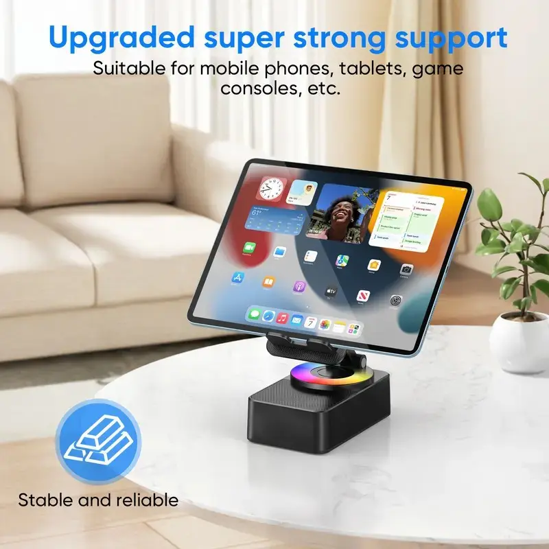 ·360° Rotating Phone Holder: The foldable phone holder features a 360-degree rotation, allowing you to adjust your device to the perfect viewing angle, whether in portrait or landscape mode. Ideal for video calls, watching movies, or browsing.