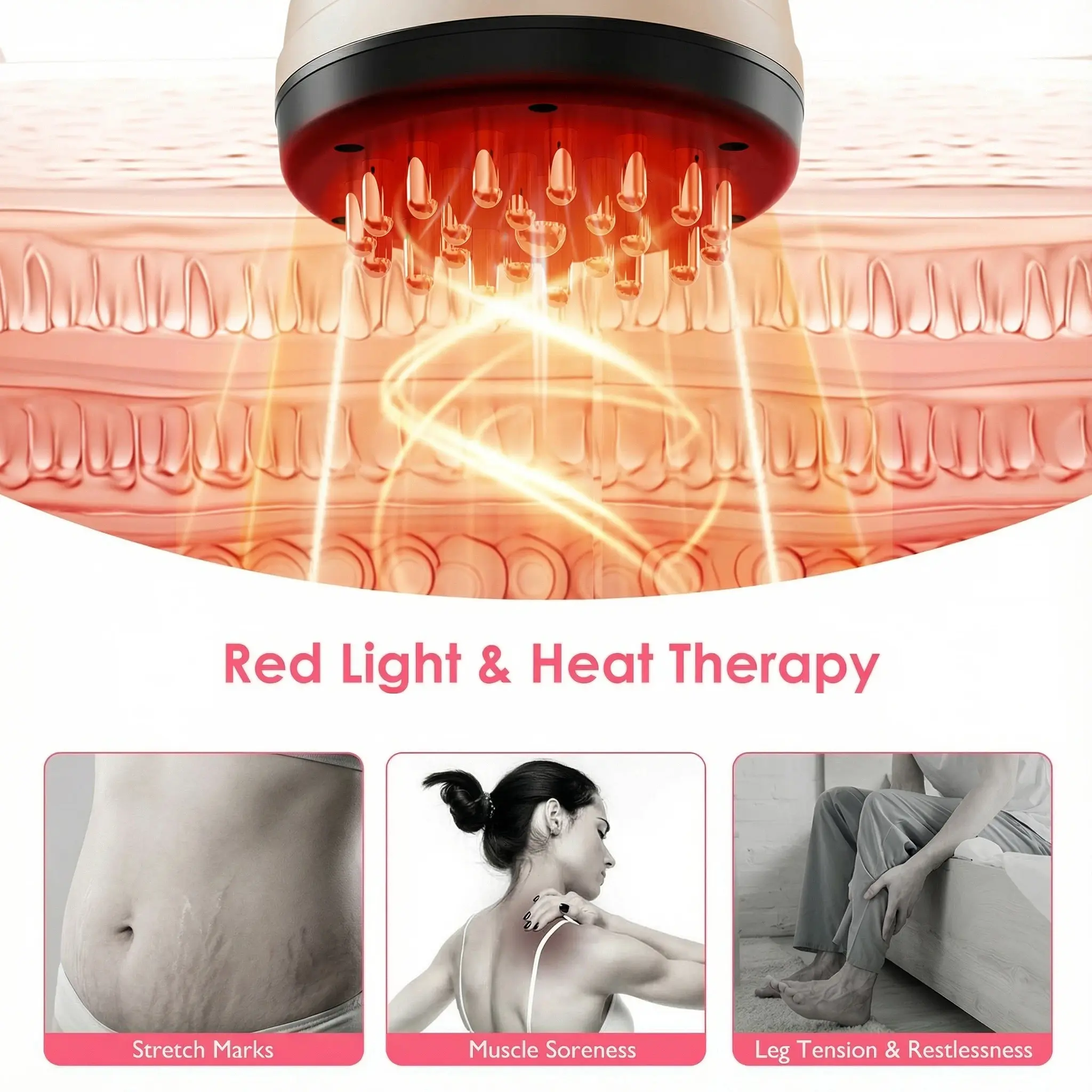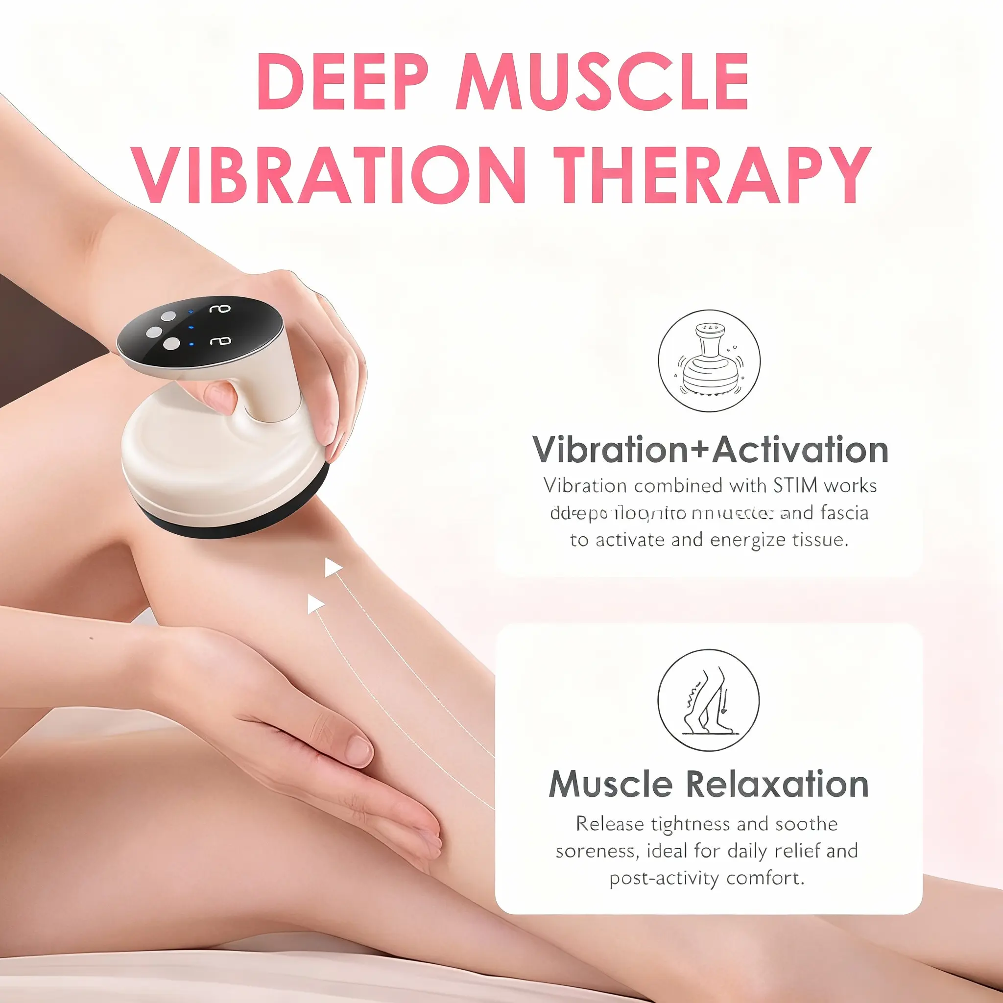 Terapia de Calor: La función de calefacción es rápida y efectiva, ideal para relajar músculos tensos antes de aplicar la vibración.