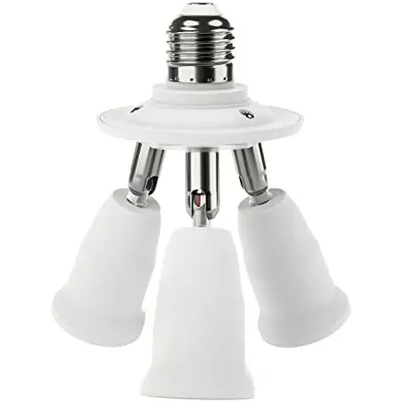 3 in 1 E26 Light Socket Splitter Adapter, Standard Base LED Bulb Converter, 360 Degrees Adjustable 180 Bendable, 3 Way Bulbs Socket Holder