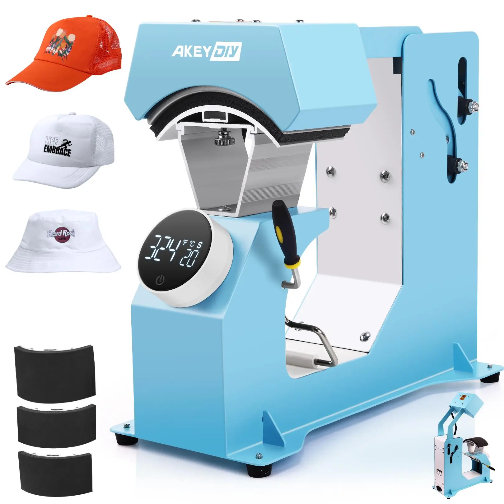 【Support Various Caps】This upgraded hat heat press with 3 interchangeable lower cap platens (size: 5.51 x 3, 5.9 x 2.75, and 5.9 x 3.85 inches), perfectly meets your diversified needs. It can accommodate many cap styles, including trucker, fitted, snapback, strapback, flex-fit, 5-panel, visor caps, and more. A nice option for the craft lover, sublimation beginner, and small business owner.
