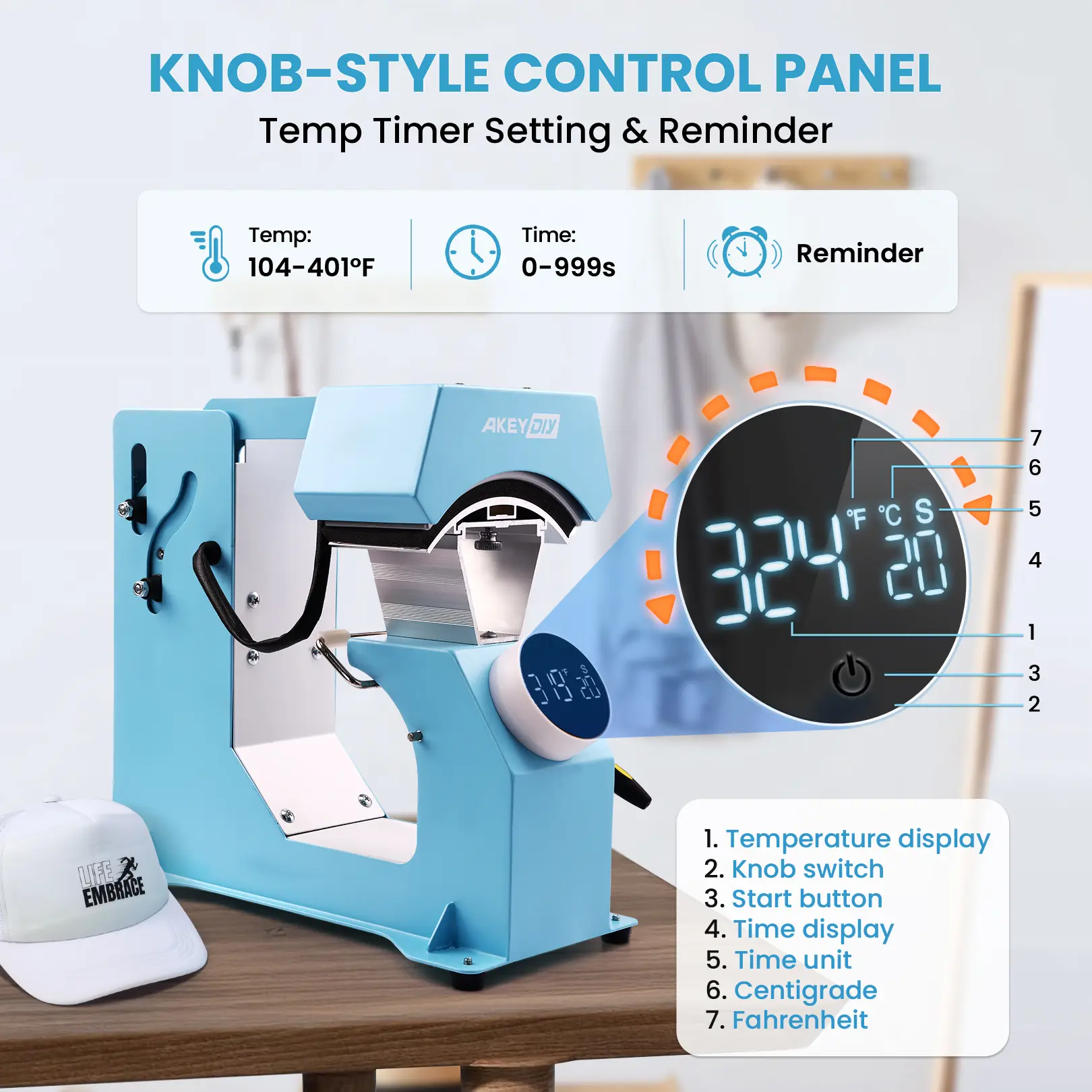 【Precise Knob Control Panel】AKEYDIY heat sublimation machine is integrated with an LCD knob panel for precise and easy control. There is no need to manually adjust the buttons continuously, only turn the knob to the right to set the temperature, and turn it to the left to set the time. Anyone can do this fool-proof operation.