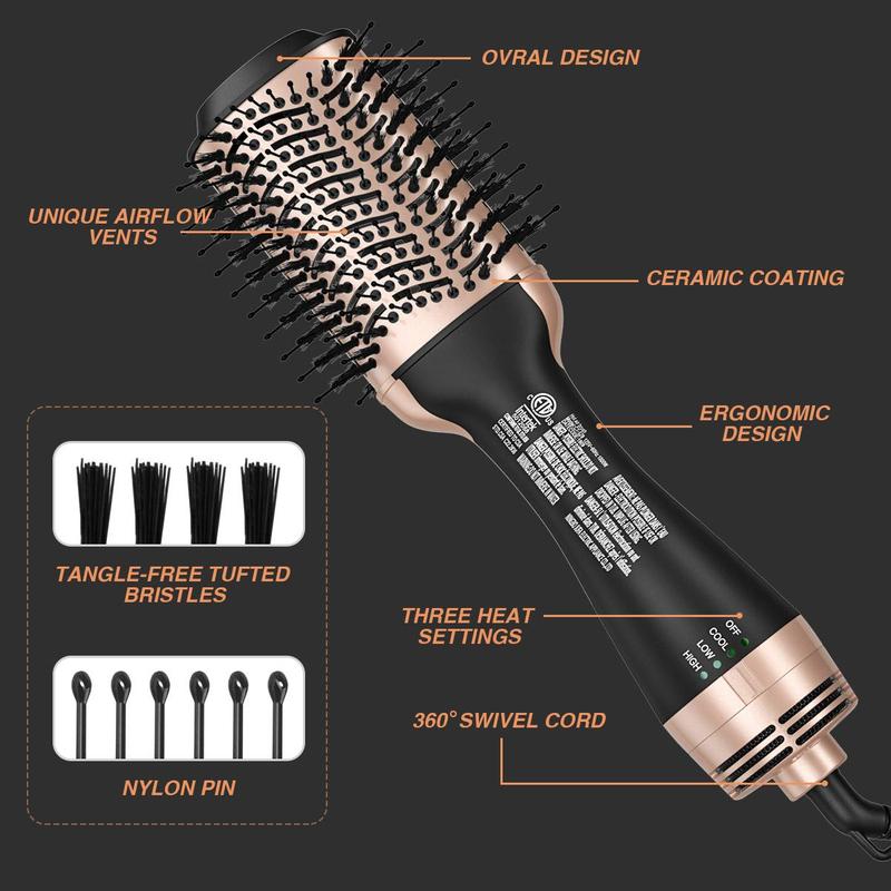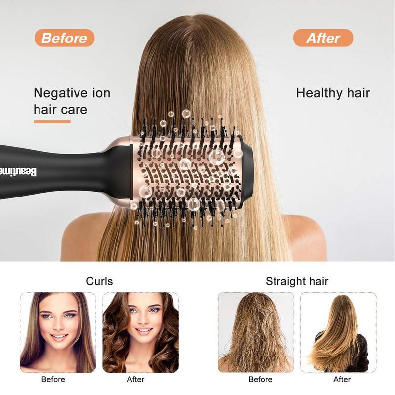 ·【VERSATILE STYLING TOOL】 This hot air brush helps you to create soft, loose curls styles and straight styles. With 1000W high power motor, this styler heats up fast and even, making the air distributed through the entire brush, quickly dry and style your hair.