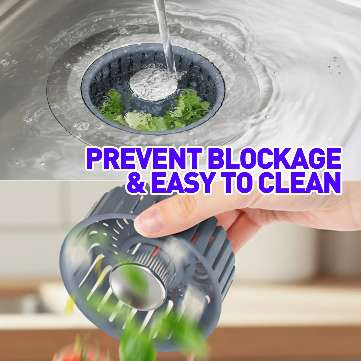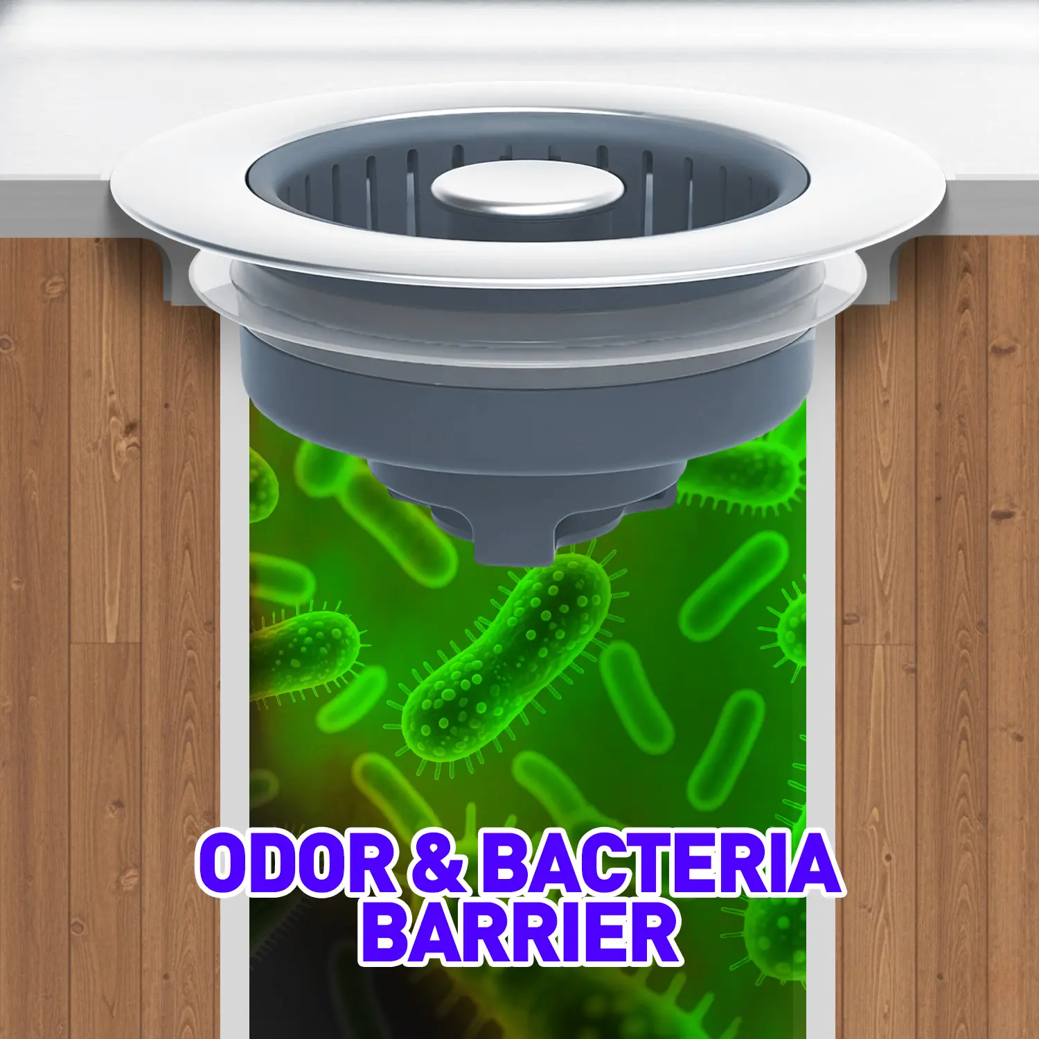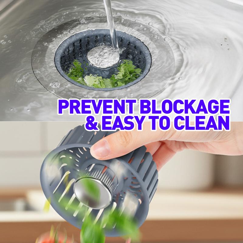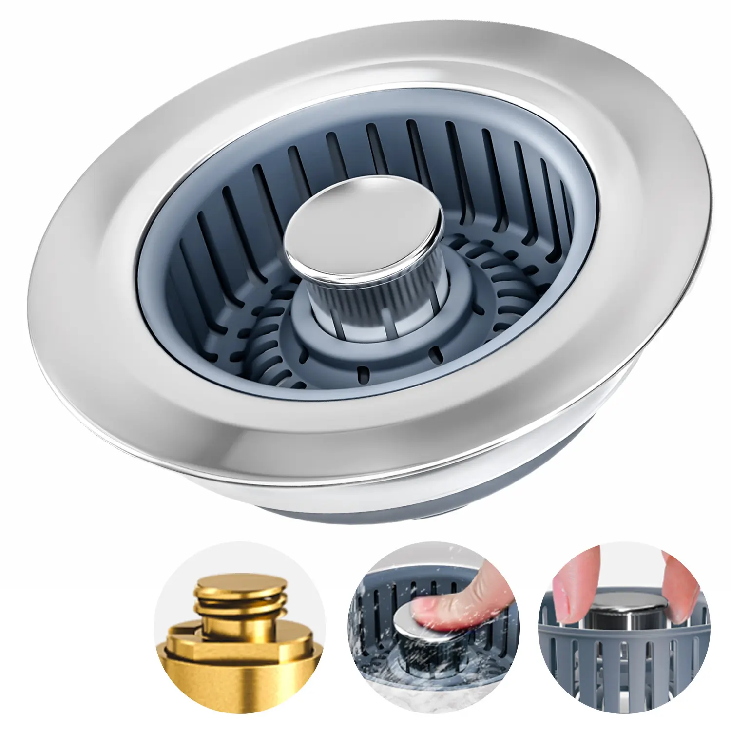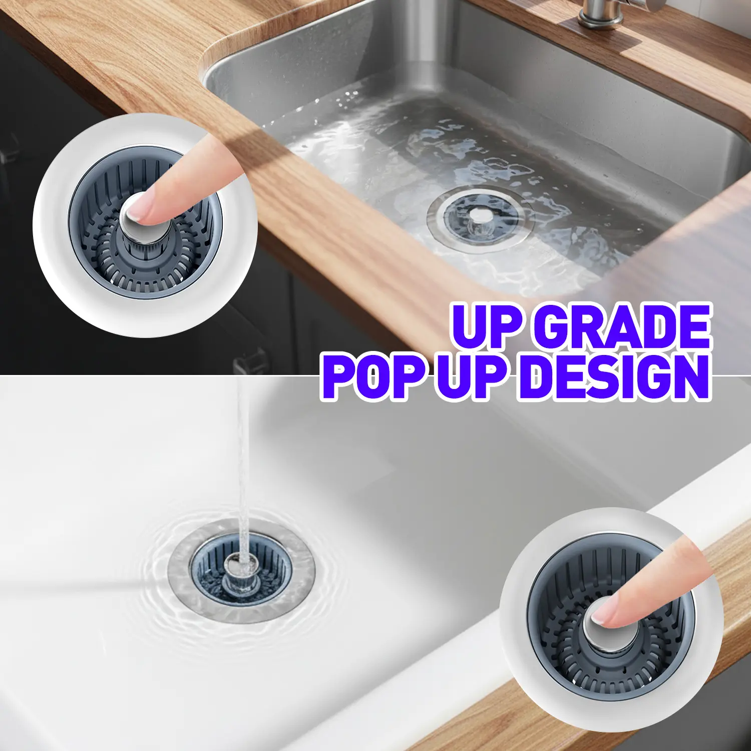 This all-in-one kitchen sink strainer combines a drain filter, stopper, and odor blocker. Simply press the pop-up button to fill the sink with water for washing, and press again to drain while catching food scraps—no more clogs or unwanted smells. Your go-to solution for a clog-free sink.
