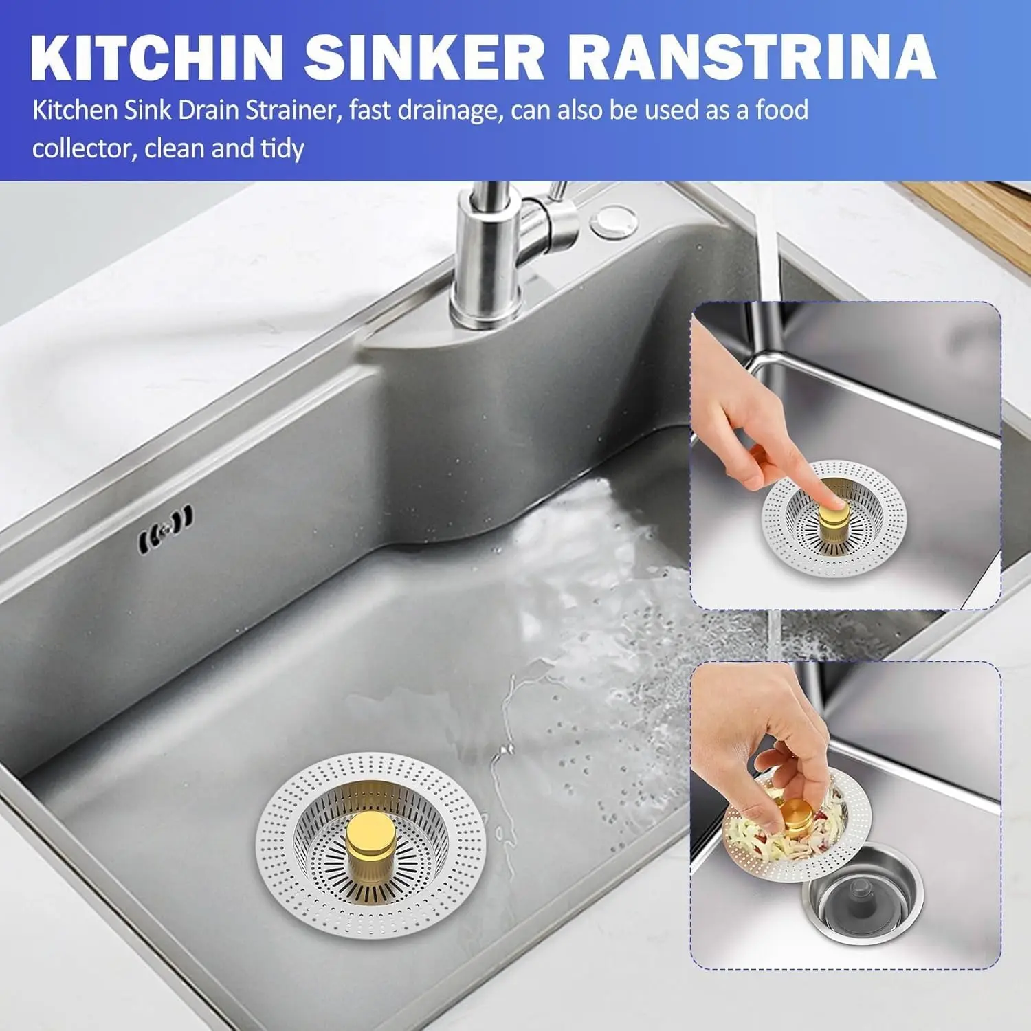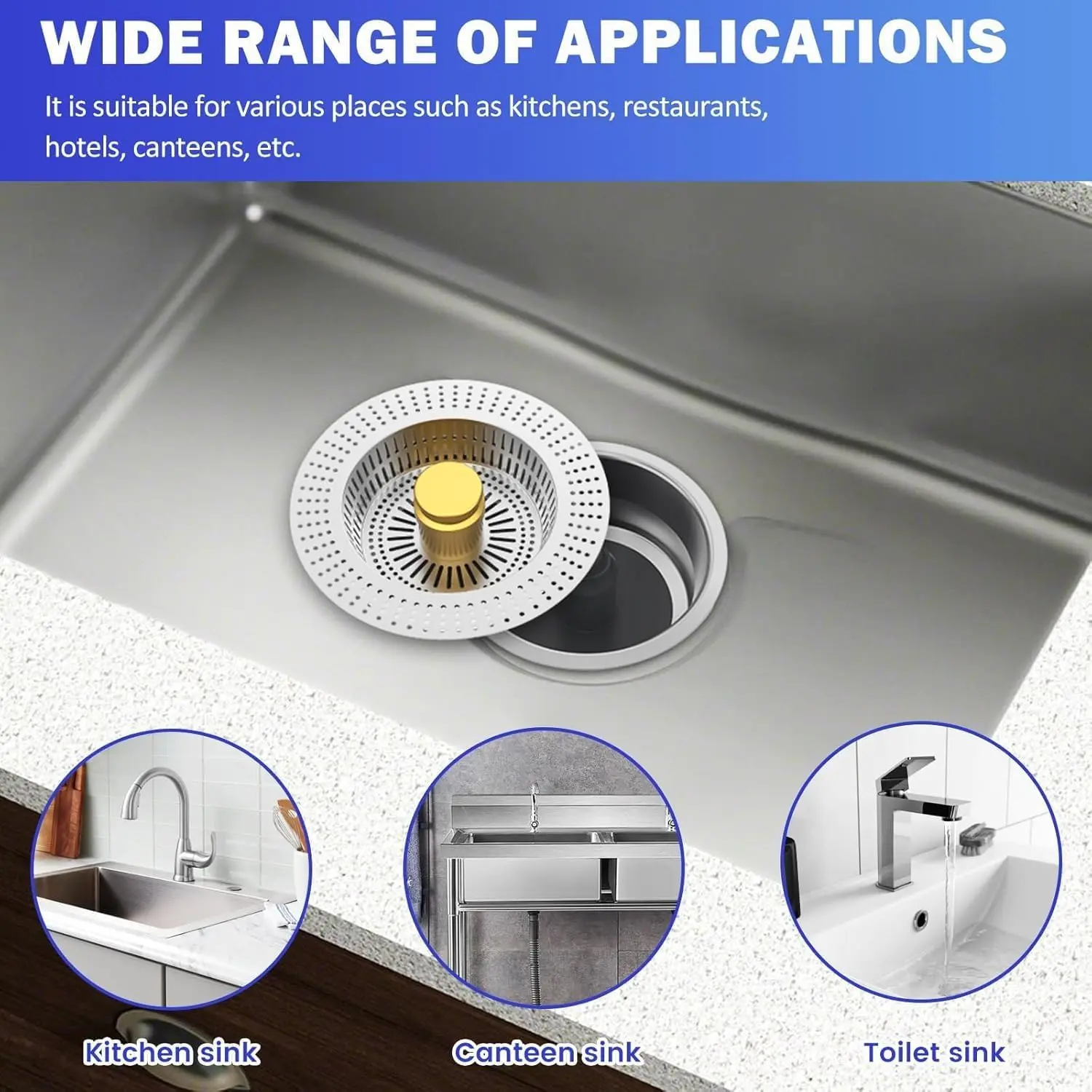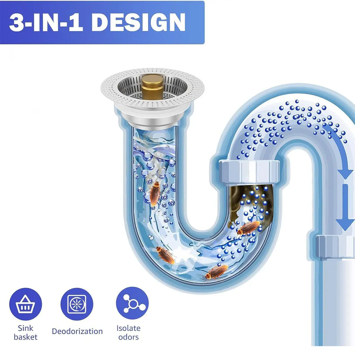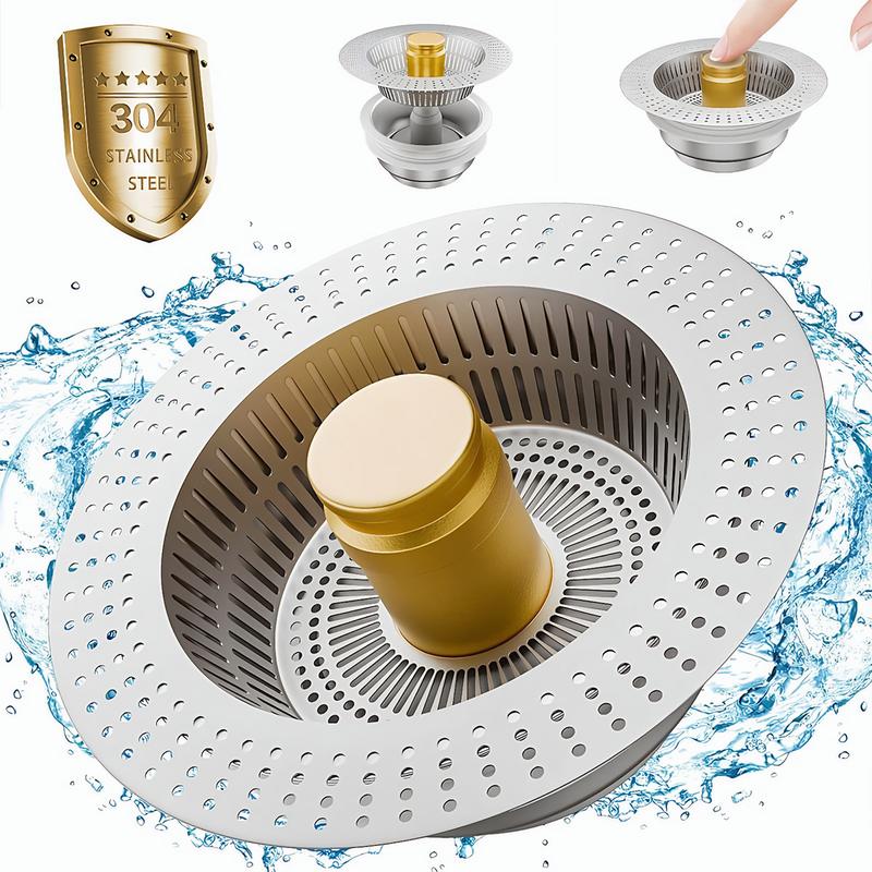• Versatile Design: Our kitchen sink strainer combines a drain strainer, stopper, and odor isolation. Press the pop-up button to store water for washing, then drain it while catching food waste. It's a reliable anti-clogging helper.