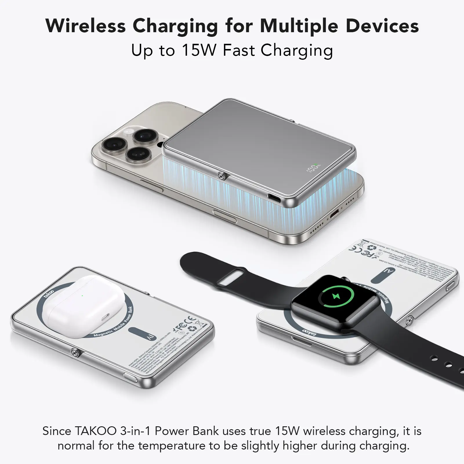 Since TAKOO 3-in-1 Power Bank uses true 15W wireless charging, it is normal for the temperature to be slightly higher during charging.