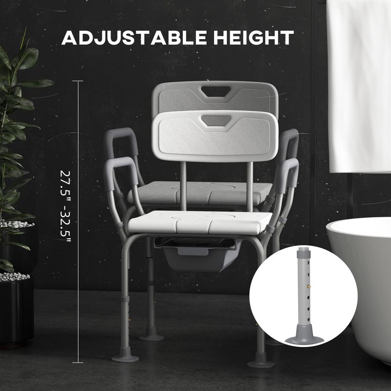 Step into comfort and convenience with a HOMCOM 3-in-1 shower chair with arms and back. This versatile companion serves as a bath seat, bedside commode, and raised toilet seat, offering a seamless experience in any setting. Our detachable bucket ensures easy cleaning, while the 16.5" wide seat caters to individuals up to 299 lbs., allowing for comfortable seating and effortless mobility. With a shower seat, suddenly, daily routines can be made a lot easier.