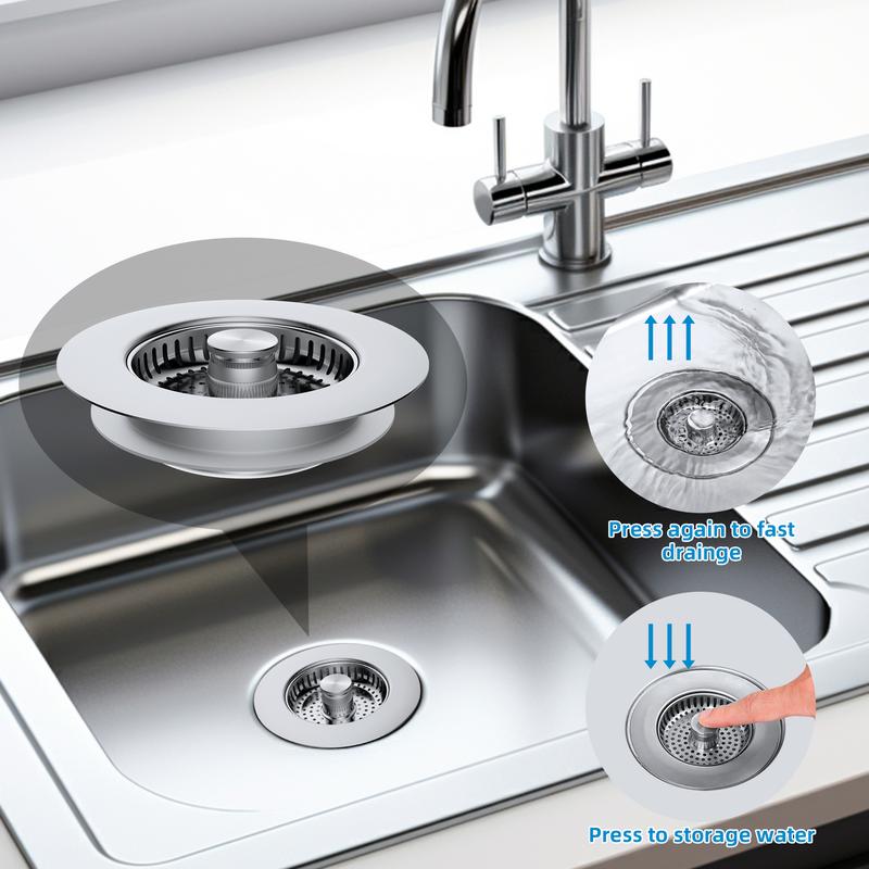 Invovative 3-in-1 Functionality: The sink strainer is a versatile 3-in-1 tool that doubles as a water reservoir, a strainer, and an smell barrier; With its multi-layer sealing gaskets, it not only prevents leaks but also encapsulates smell from the kitchen drain; Whether you're washing dishes, filling the sink, or keeping food debris from clogging the drain, this innovative accessory offers comprehensive functionality for all your kitchen needs