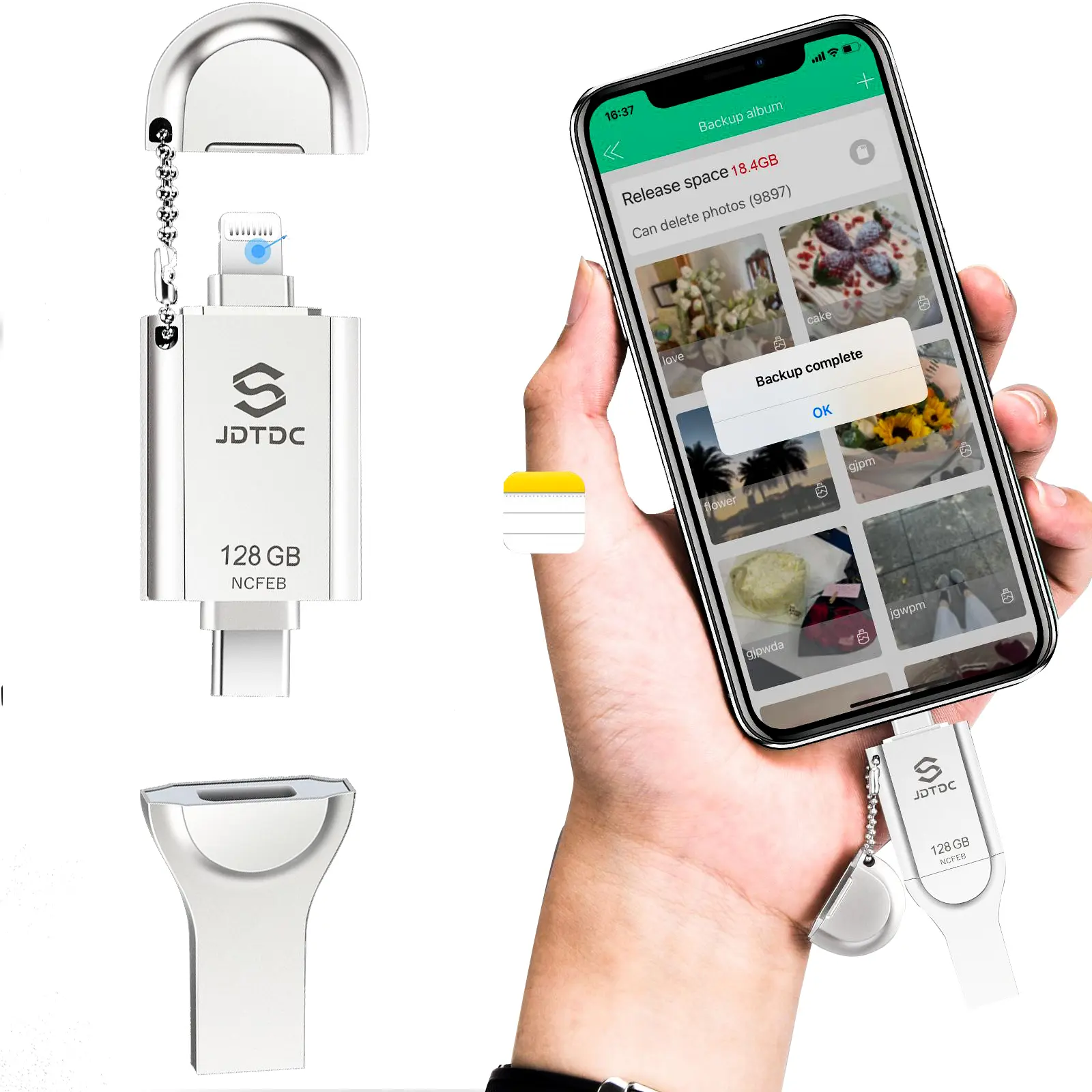 ·For iPhone and iPad: If you are using iPhone photo stick for the first time, please download MFi Certified "JD Memory" APP from App Store.