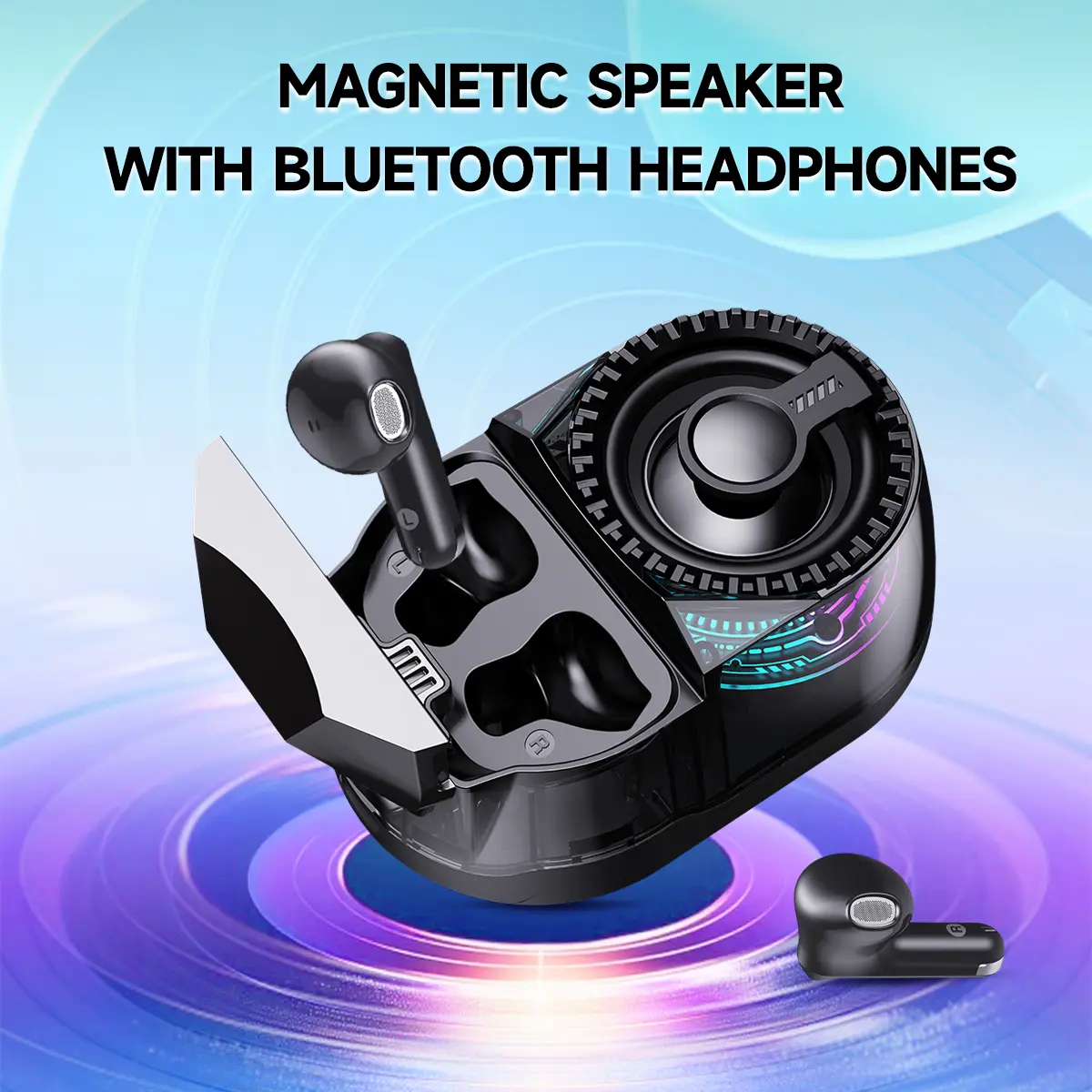 This versatile speaker offers a unique 3-in-1 design, combining a Bluetooth speaker with earbuds and a universal stand. Perfect for home, outdoor, or travel use, it delivers surround sound for an immersive audio experience. The portable desktop gift is ideal for enhancing your listening pleasure on the go.