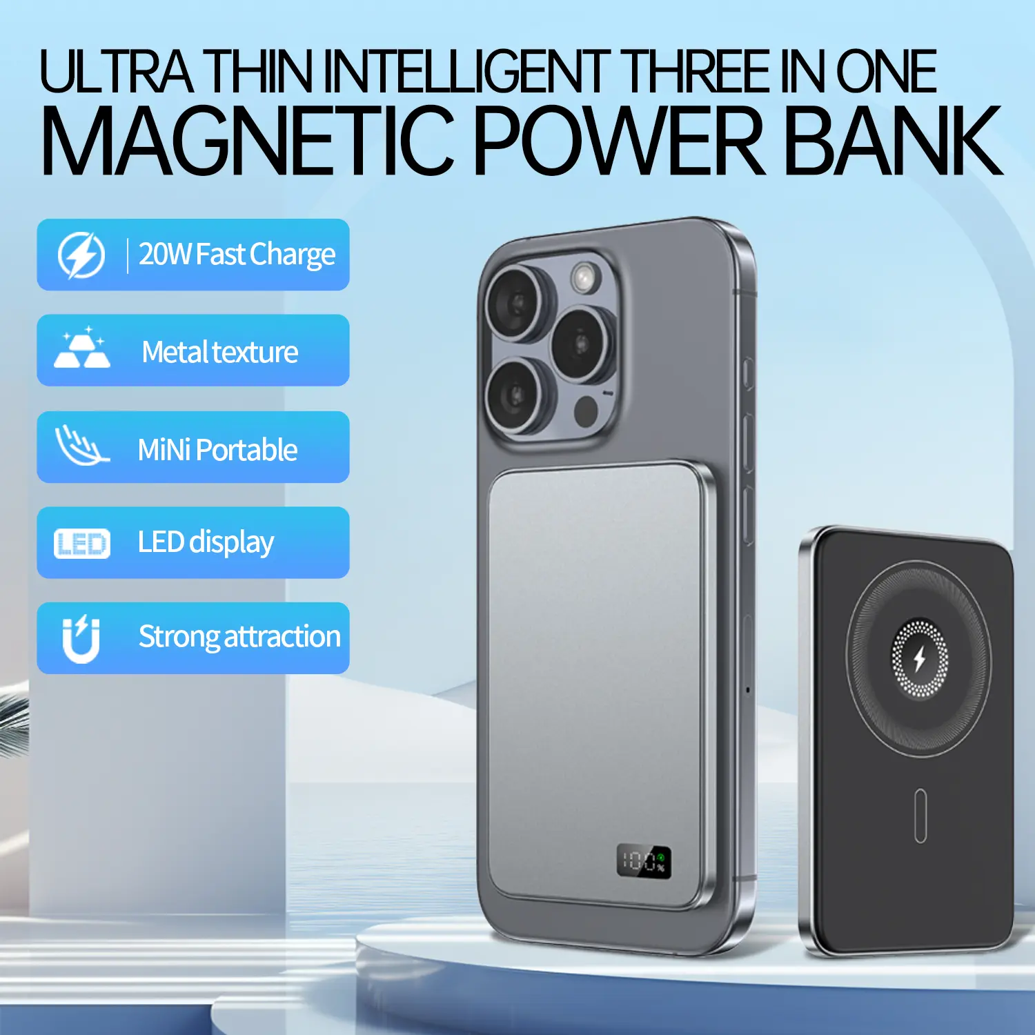 🌟 3-in-1 Magnetic Wireless Power Bank (5000mAh)
