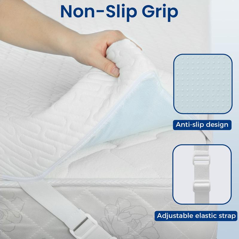 Made from OEKO-TEX certified bamboo fabric that’s soft, skin-friendly, and breathable. Features adjustable elastic straps and a non-slip backing to prevent shifting, plus a zippered cover for easy removal and washing.