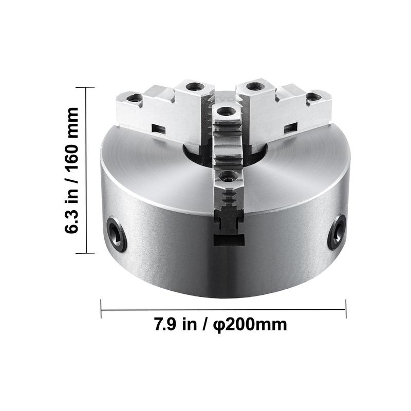 • Dual-Use Jaw: The chuck jaws can be used as both internal jaw and external jaw. The external jaws are capable of clamping larger-sized industrial parts. 0.16-8 in/4-200 mm clamping range provides precise clamping and securing of various industrial components.