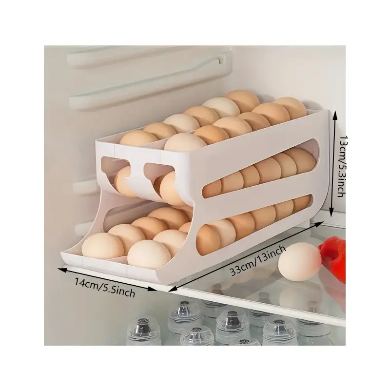 3 Layer Egg Storage Box, Large Capacity Egg Rack, Automatic Rolling Egg Holder, Kitchen Fridge Organizer, Home Use, Stackable Fridge Organizer
