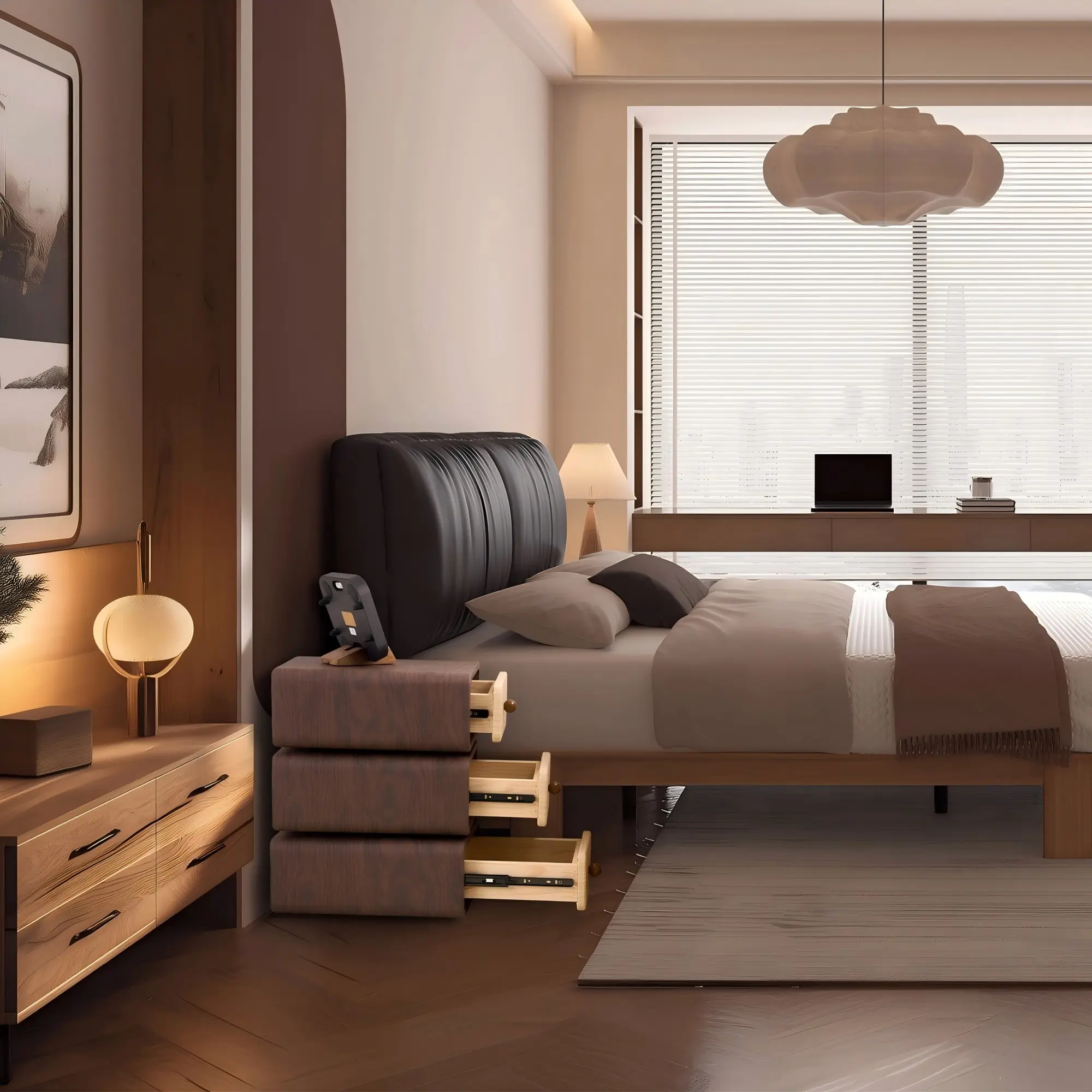 ·Solid Wood Construction: Made from solid wood, this nightstand offers durability and a smooth, refined texture. The luxurious leather finish adds a touch of elegance. 🌳
