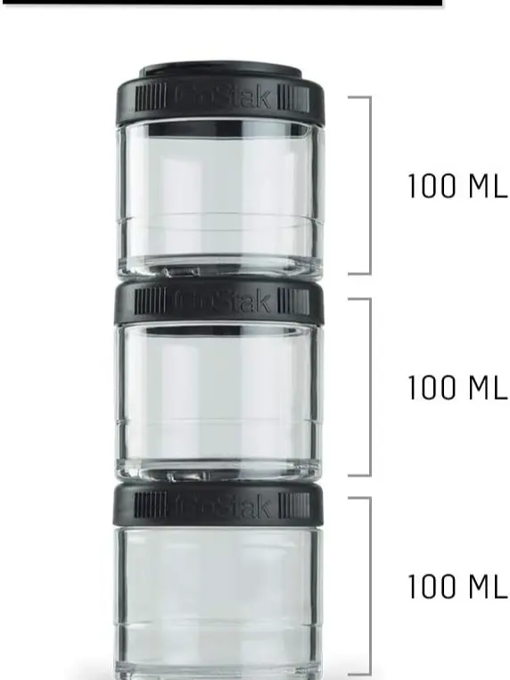 3-Pack 100cc Stackable Containers, Black – Portable Storage for Supplements, Snacks & Powders
