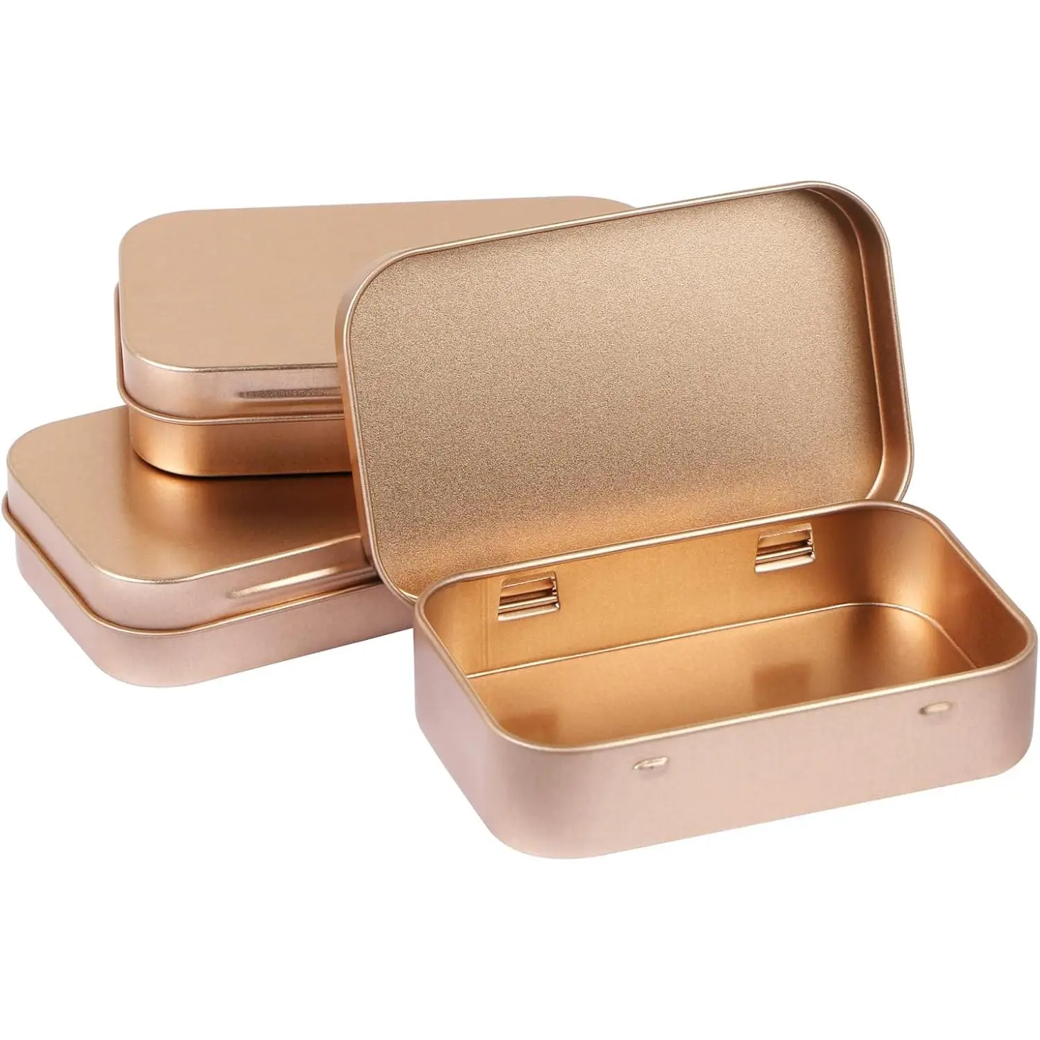 3 Pack Metal Rectangular Hinged Tins Box with Lid Mini Portable Box Empty Craft Containers Small Storage Kit Home Outdoors Organizer for Soap Mint Cookie 3.8x2.4x0.8 inch, Rose Gold