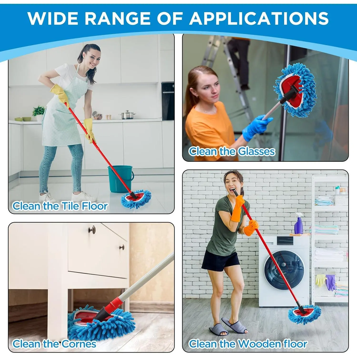 Wall Cleaner Mop with Long Handle 82 Inches, 3-in-1 Ceiling Cleaning Tool Duster with 6 Replacement Microfiber Chenille Pads for Painted Walls, Window, Floor, Baseboard