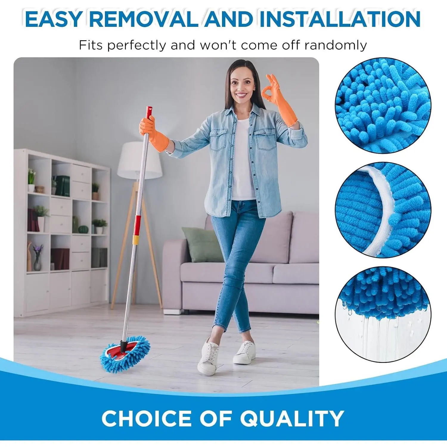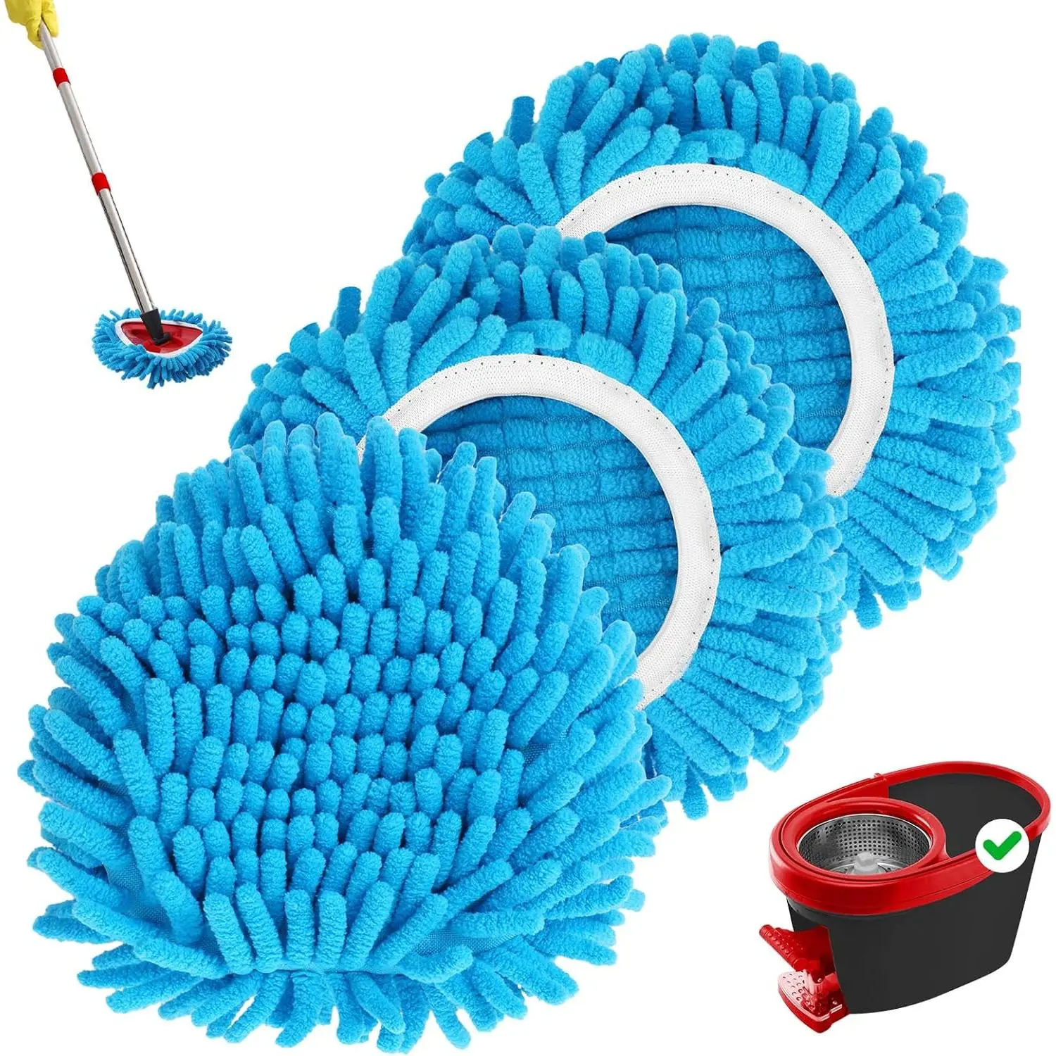 3 Pack Mop Heads Replacements Compatible with 1 Tank System Duster Replacement Heads Microfiber Spin Mop Refill Pads Reusable Dust Refills for Floor Cleaning (Blue)
