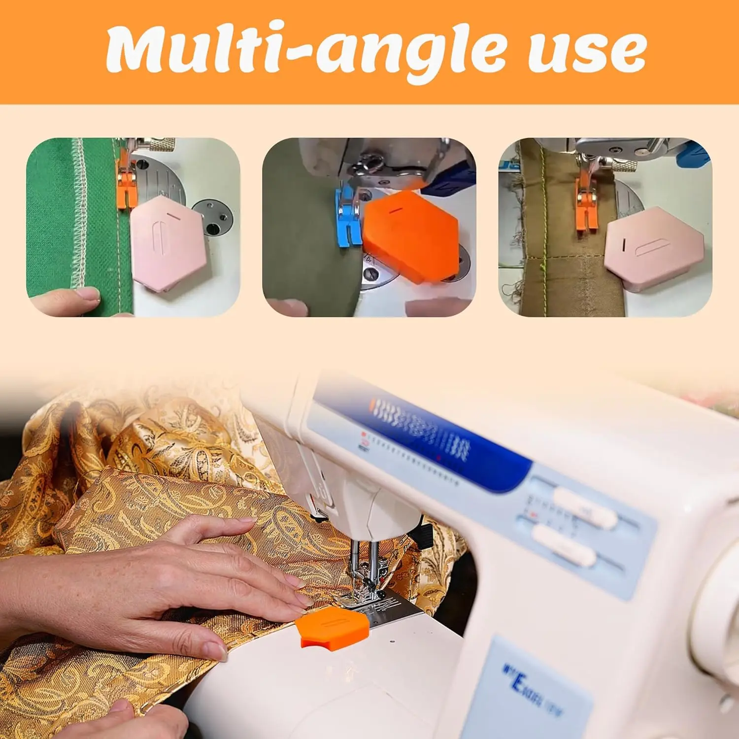 【 Edge Design】 seam guide sewing machine accessory adopts polygonal design, the prominent side edges can effectively control the position of the fabric, ensuring that the lines are neat and the thick fabric does not deviate during the sewing process.Moreover, the bottom is designed with an arc for easy access during use.