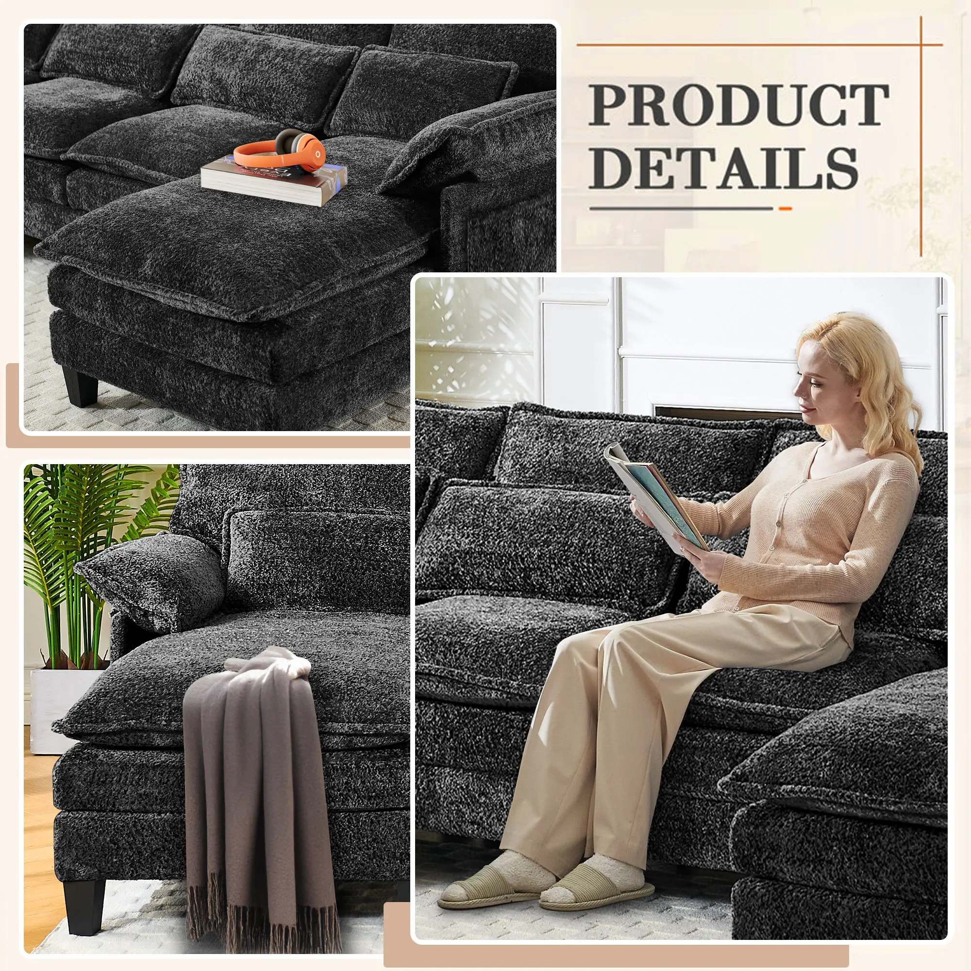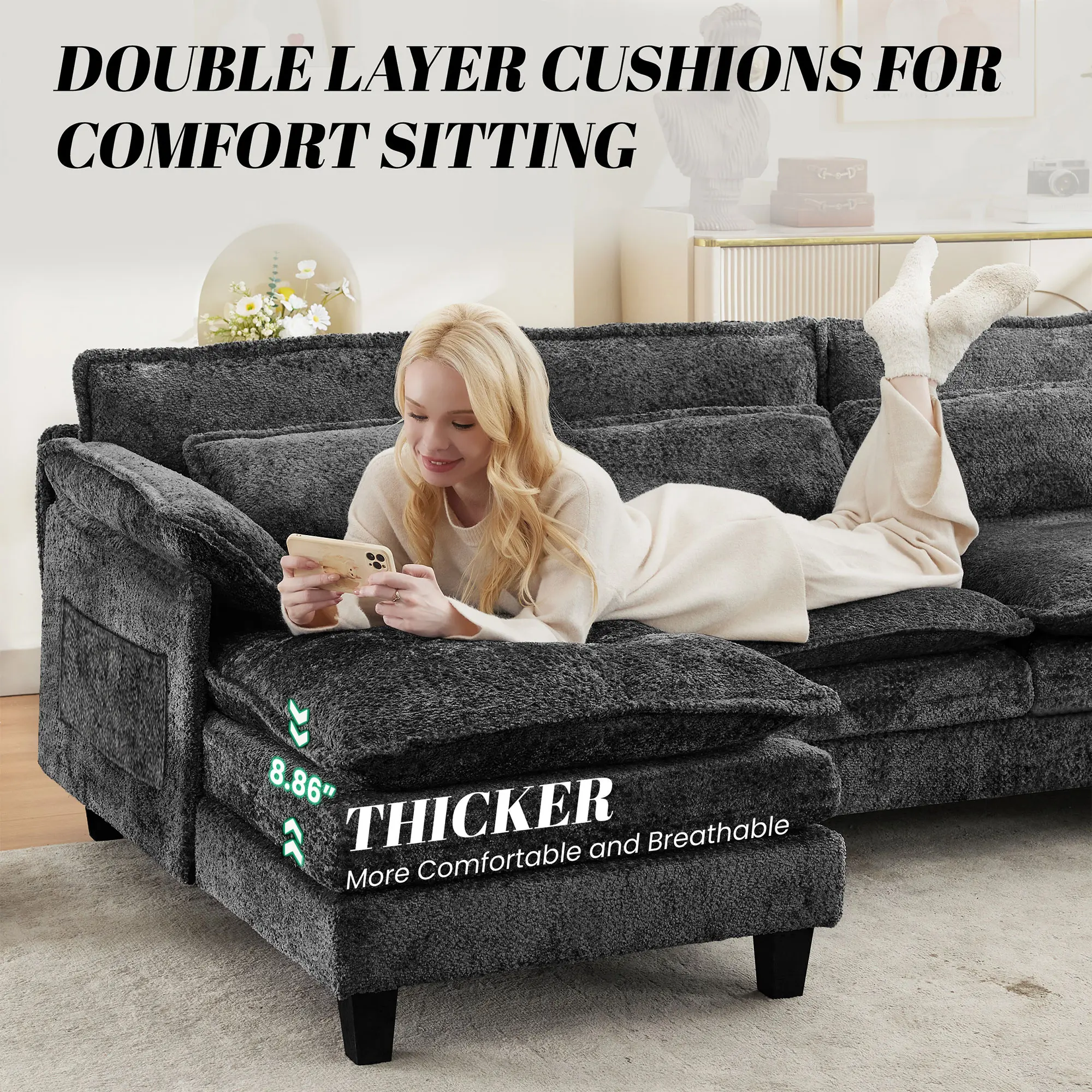 ·Buy with Confidence:Worried about tricky assembly? Don’t be.We’ve included detailed instructions and all tools needed to set up this modern convertible sectional couch—a standout among couches for living room.Even if you’re new to this,you’ll have it ready in no time. Run into issues? Just let us know—we’re here to help.Go ahead and buy this cloud sectional couch with confidence—it’s the perfect addition to your home