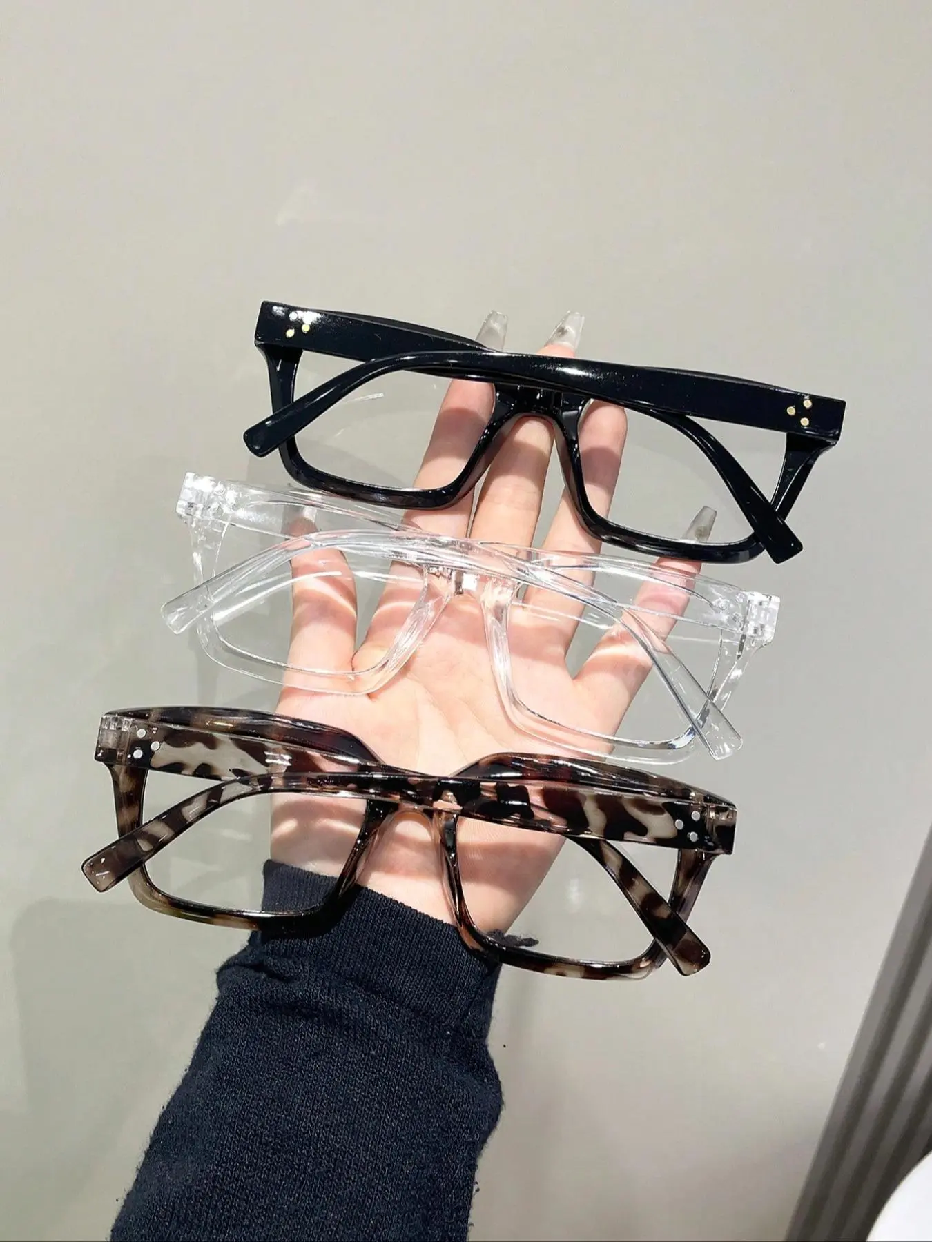 3 Pack Unisex Square Fashion Classic Casual Glasses, Stylish Leopard Pattern Eyewear for Daily Use All Seasons, Suitable for Adults and Teens, Leopard Pattern Eyeglasses