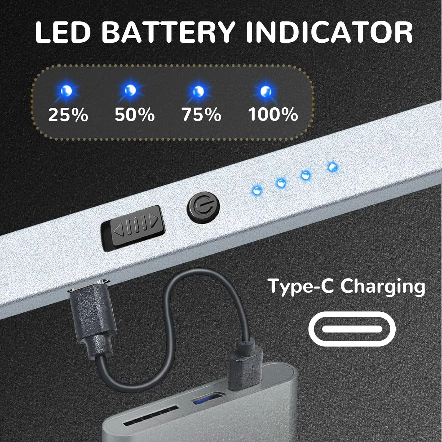 Say goodbye to refills! TYPE-C USB cable included for your convenience to plug in the power to any USB or charger. Built-in large capacity battery, and 4 led power indicator lights to remind you when it should be charged