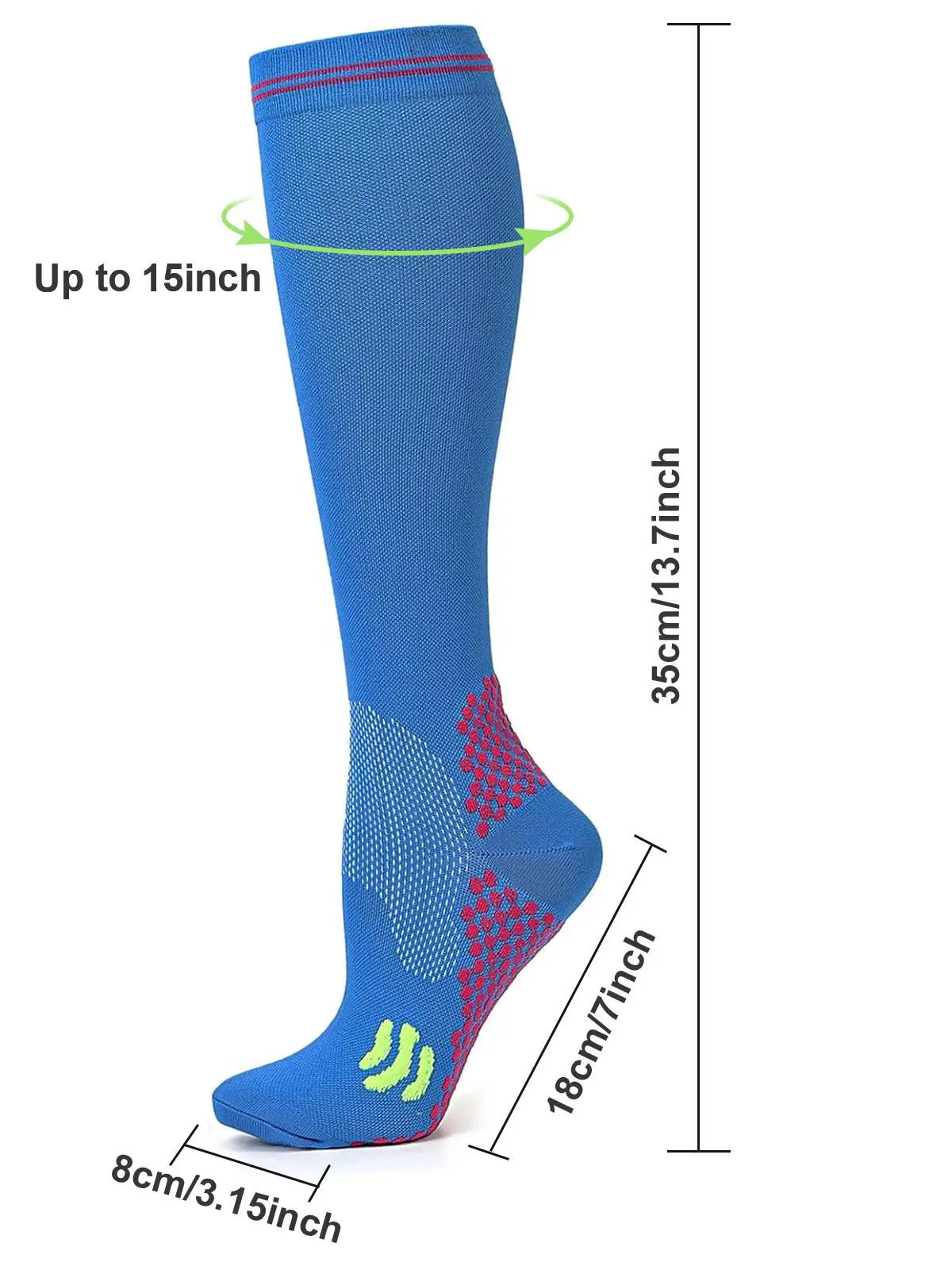 ·Versatile Style for All Occasions: Our compression socks for men and women fit various lifestyles. Whether you're running, traveling or need muscle support, these long compression socks men have you covered with high-quality performance. Suitable for all sports, cycling, skiing, mountain climbing, football, hiking, jogging, tennis, marathon, hockey, soccer, basketball, golf, etc. From daily wear to special occasions, experience lasting comfort.