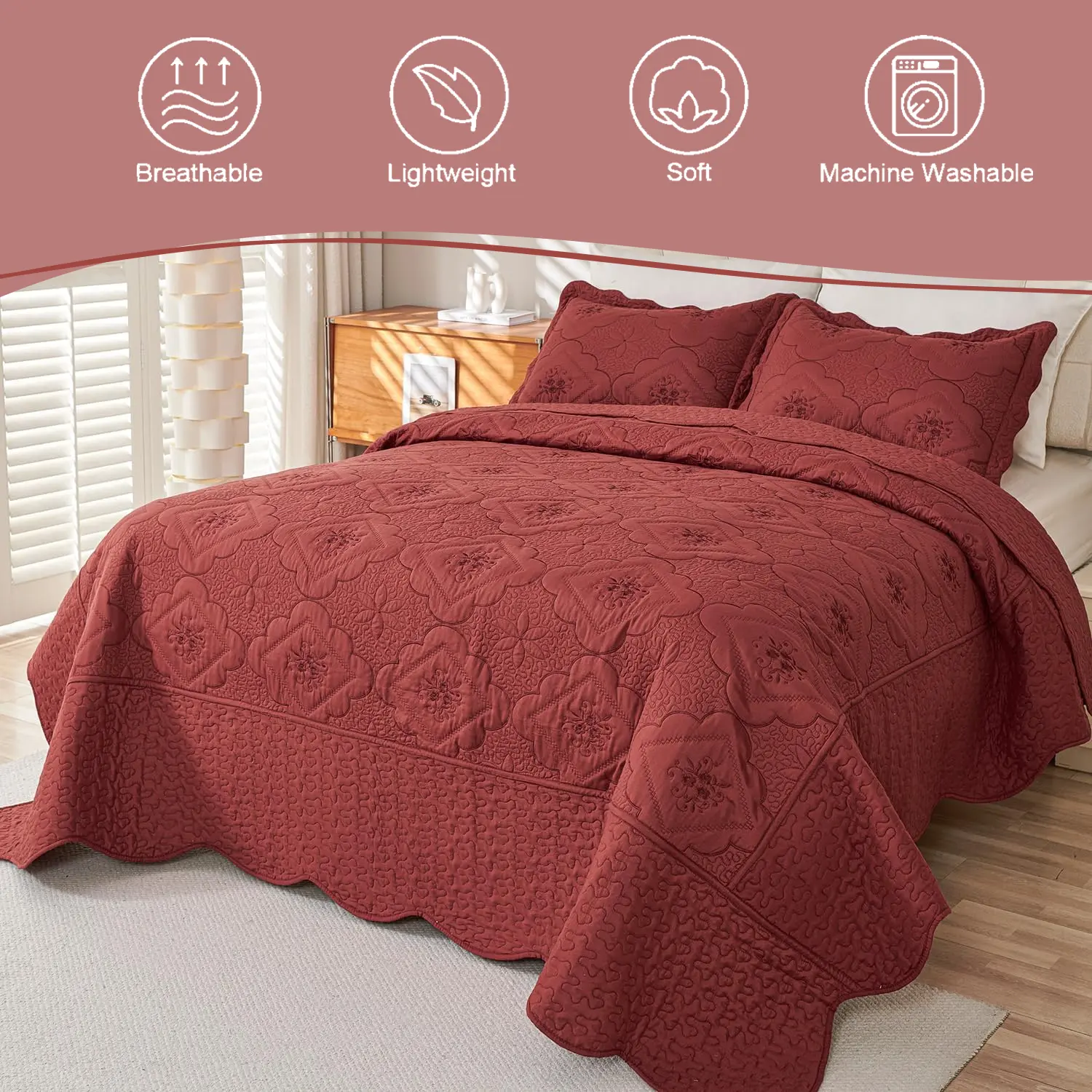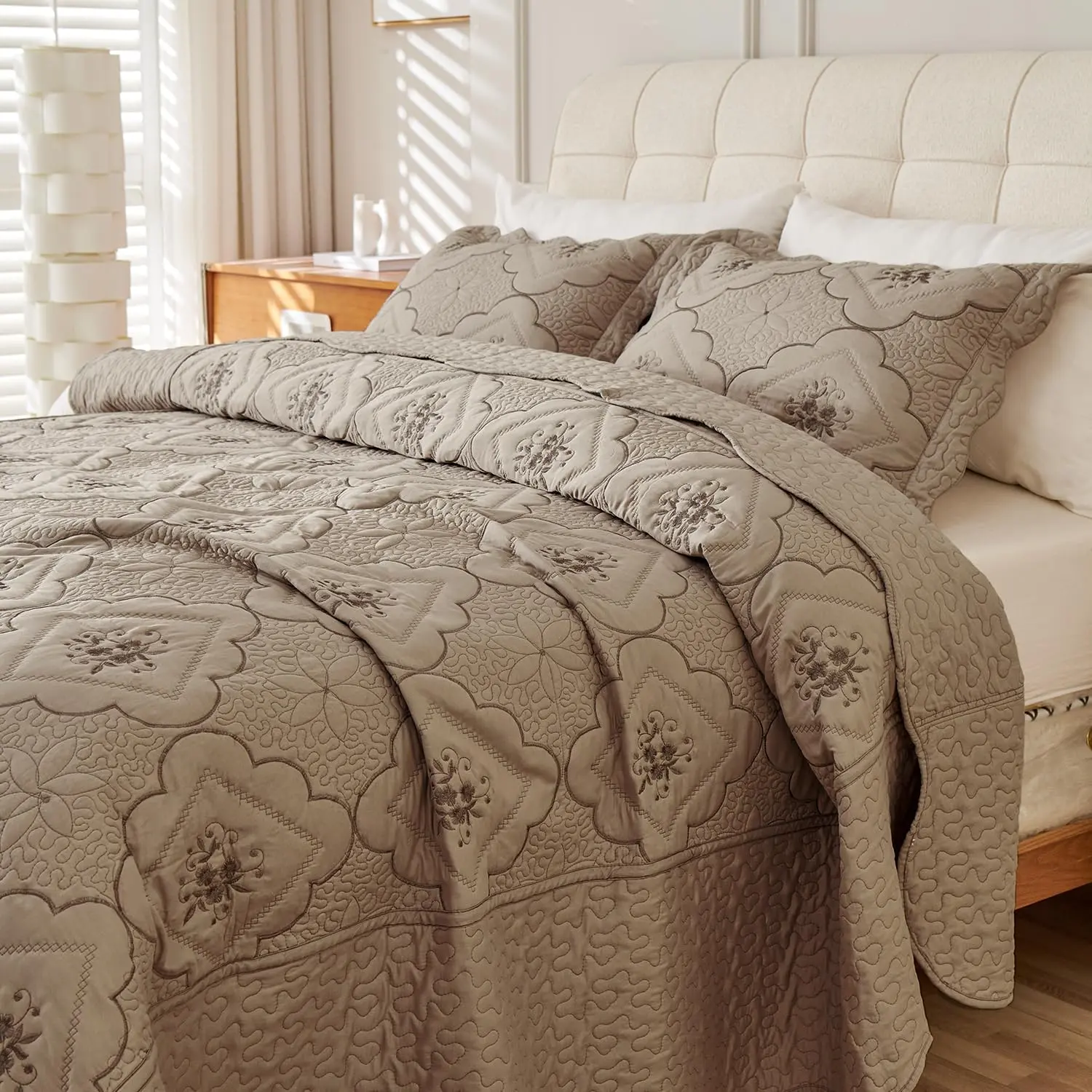 I am so pleased with this quilt! It is lightweight and perfect for warmer weather or layering with cooler weather. The color is beautiful and versatile to coordinate with most other colors. The fabric is of good quality and is so soft! Would definitely recommend.